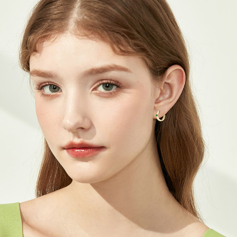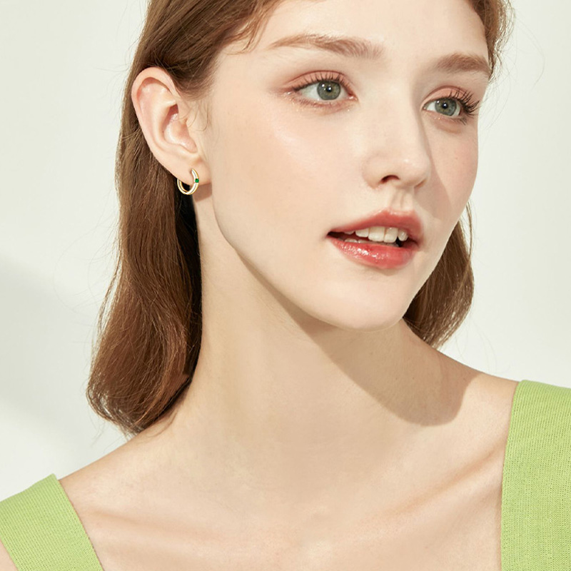 The emerald hoops are crafted in 925 sterling silver 14K gold plated with fine jewelry craft.