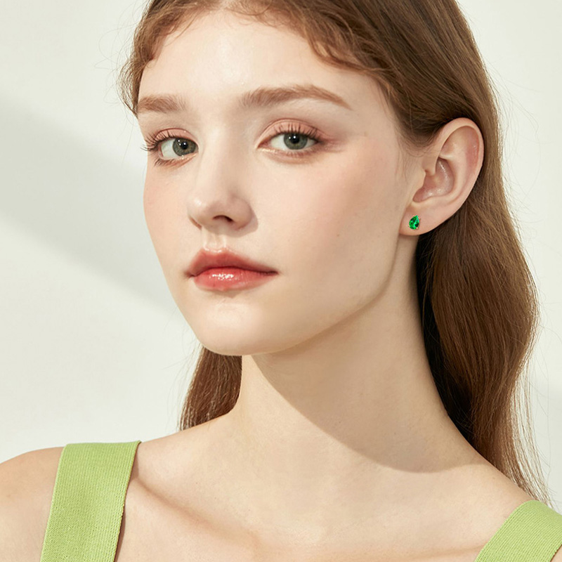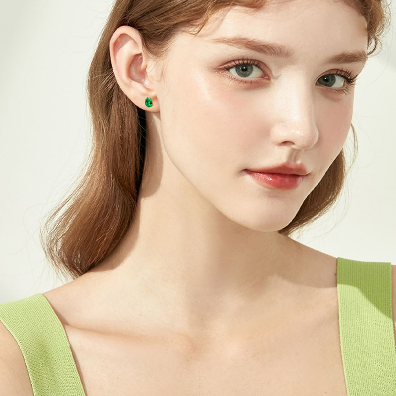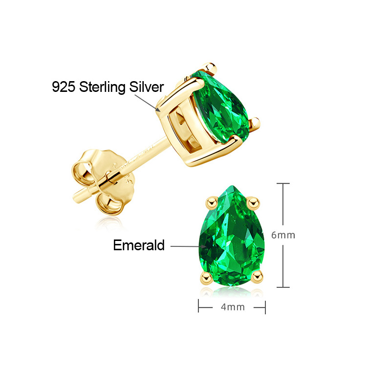 The emerald stud earrings are crafted in 925 sterling silver 14K gold plated with fine jewelry craft.
