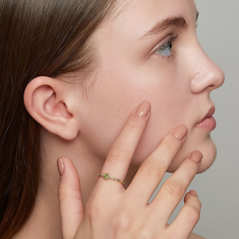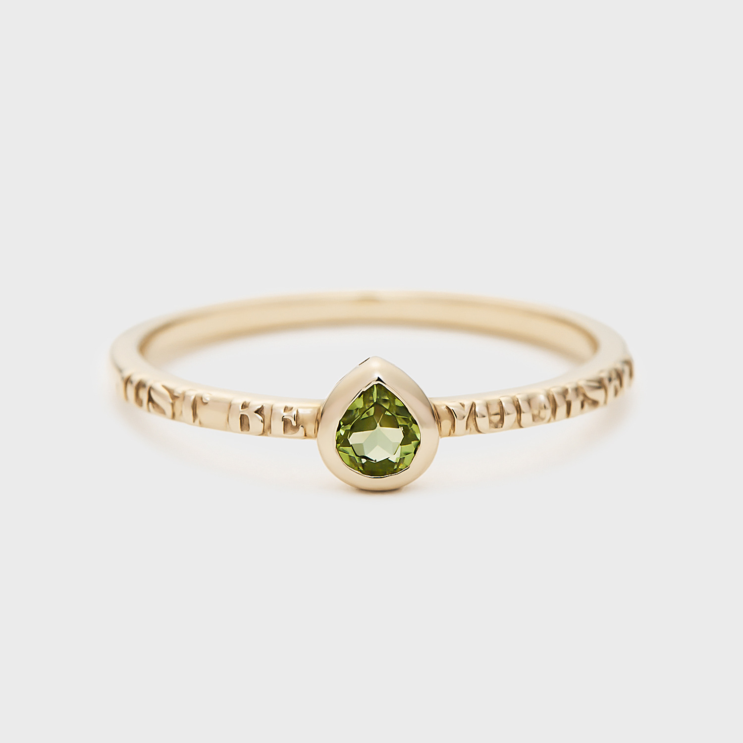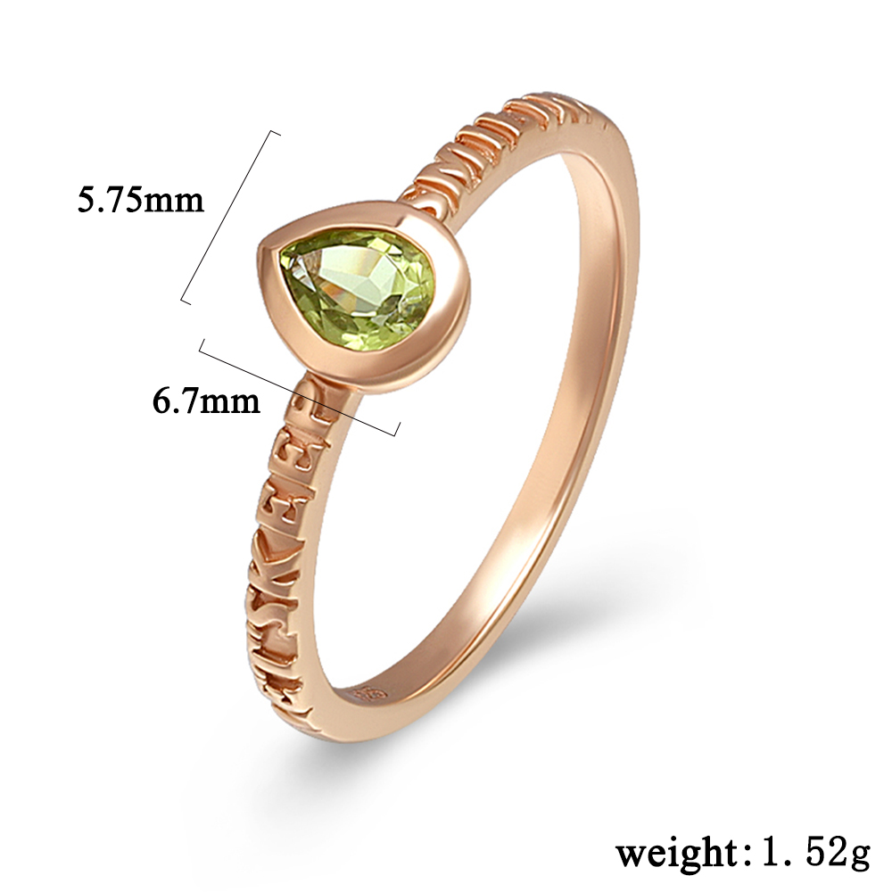 The pear shaped peridot ring is crafted in 925 sterling silver gold plated with fine jewelry craft.