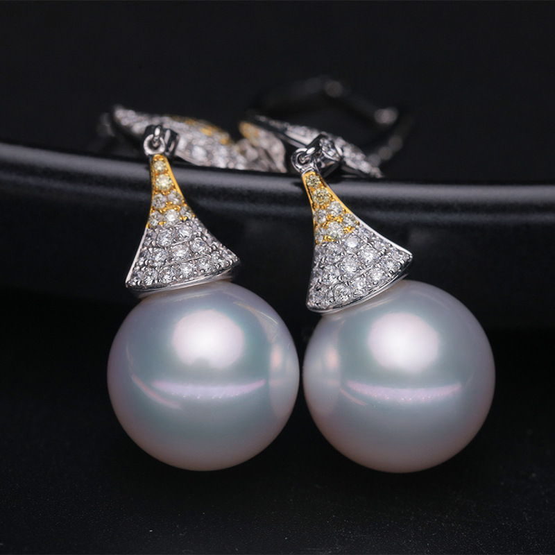 White14mm Perfect Round Seawater Pearl Drop Earrings for Women Wedding