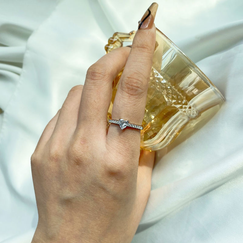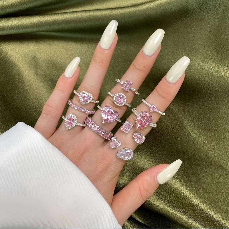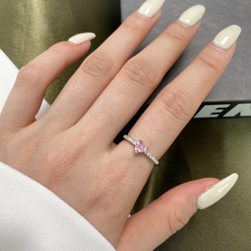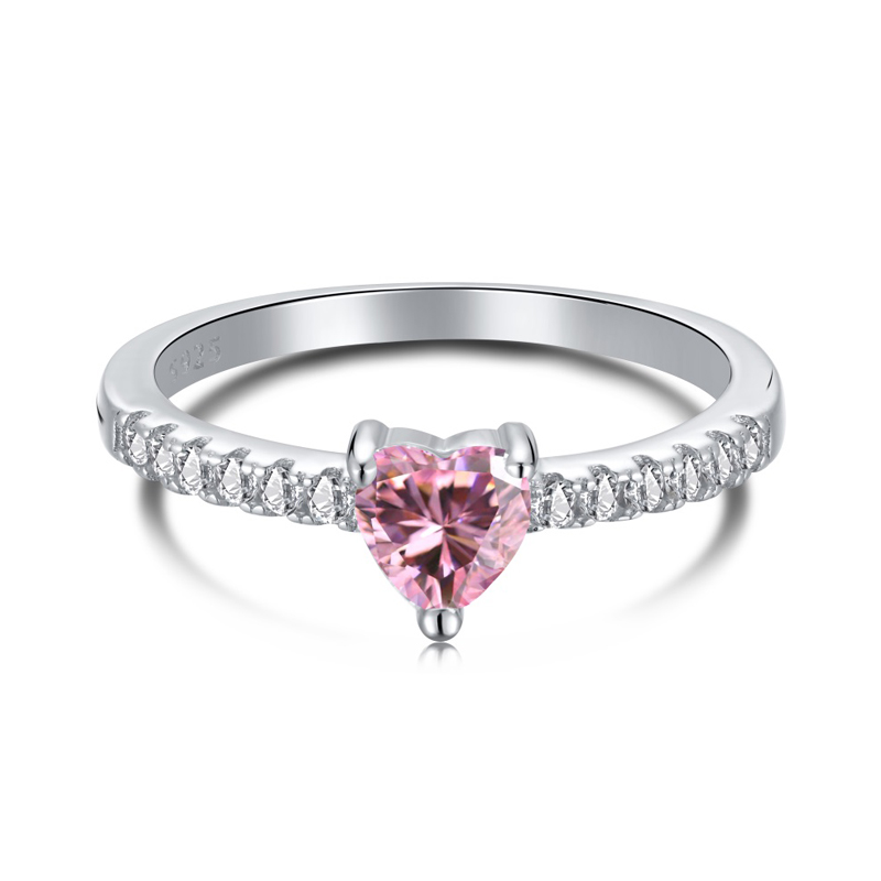The pink heart shape ring is crafted in 925 sterling silver real 18K white gold plated with fine jewelry craft.