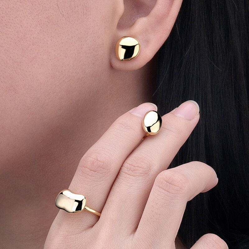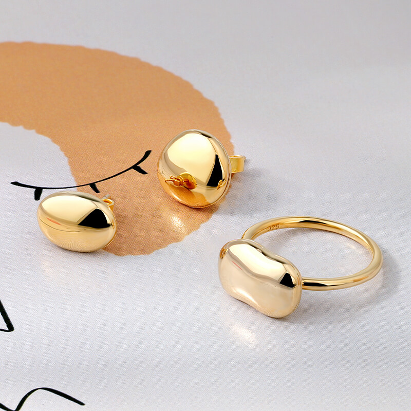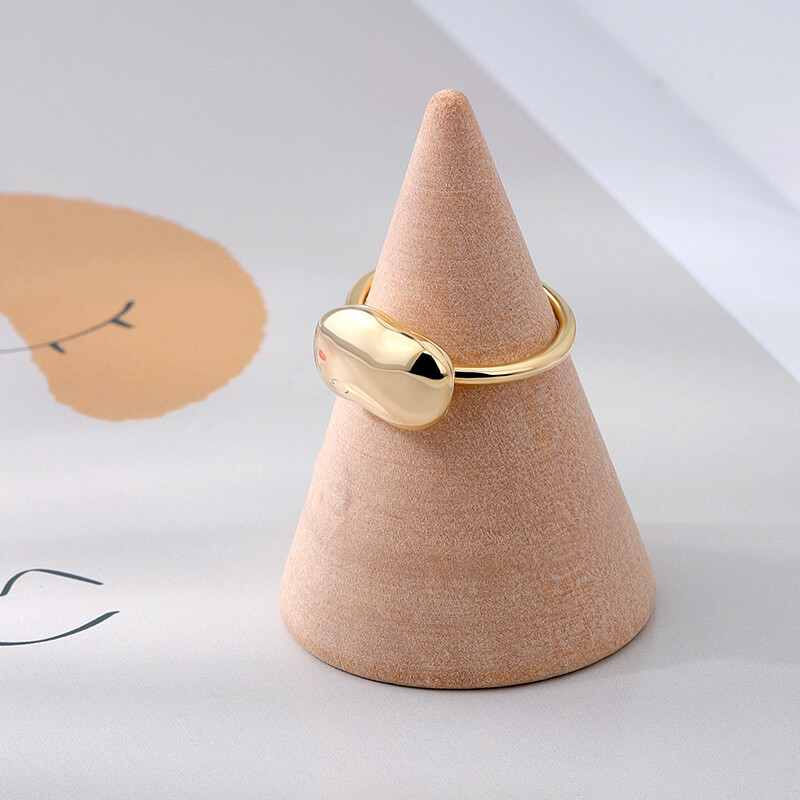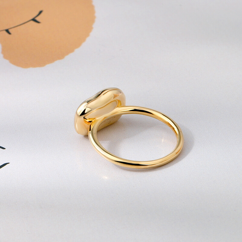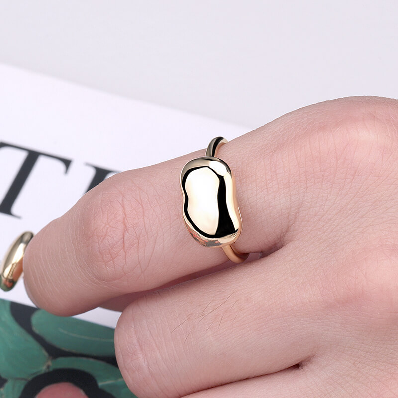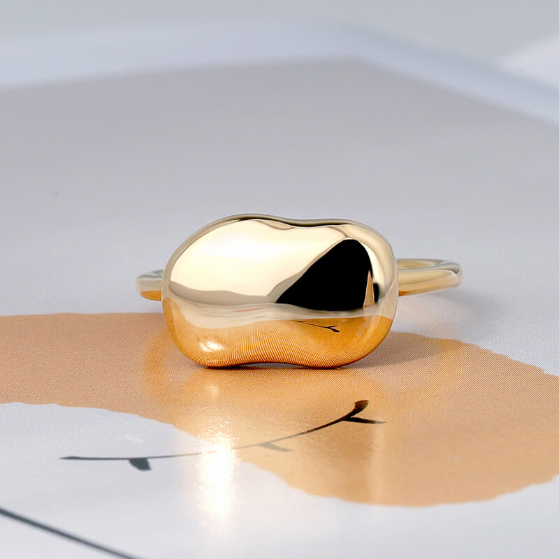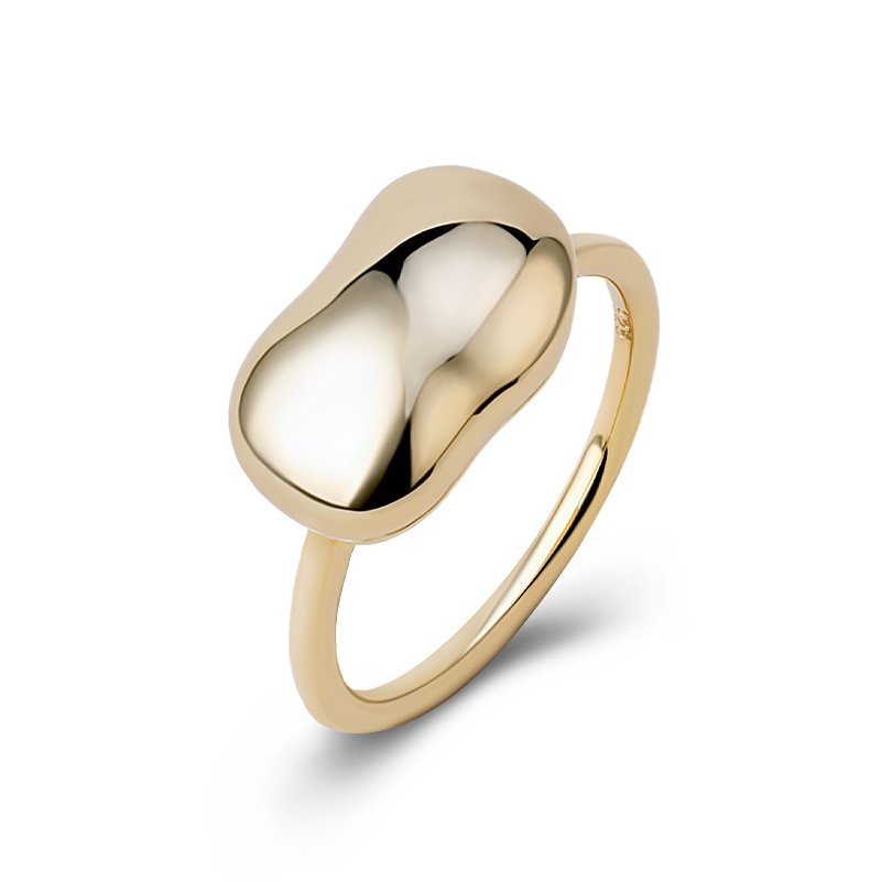 The Polishing Bean Ring is crafted in 925 sterling silver 18k gold plated with fine jewelry craft.