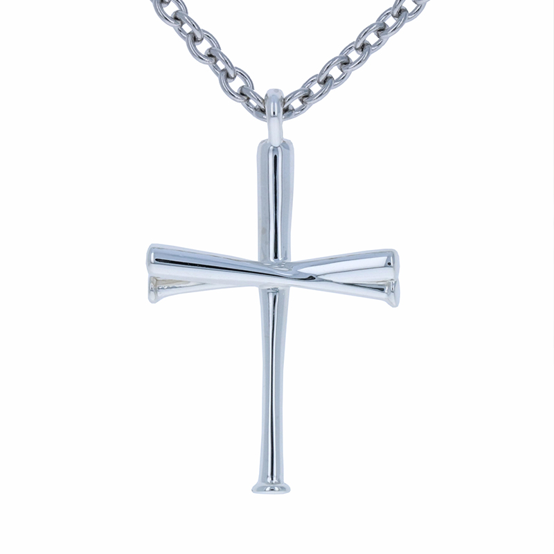 This cross necklace is made up of three baseball bats and has been worn by at least 50 baseball players.