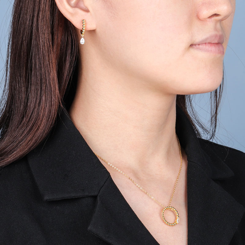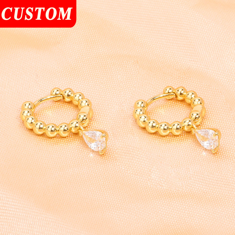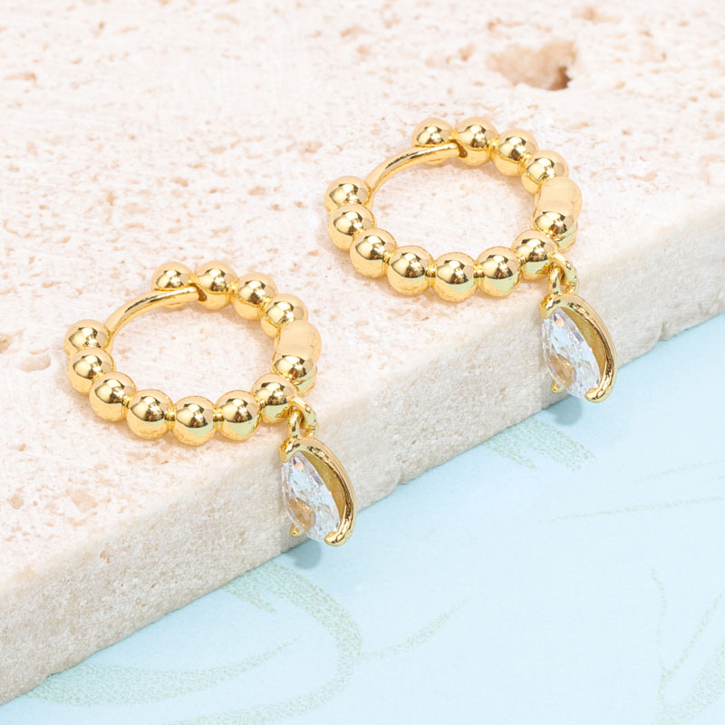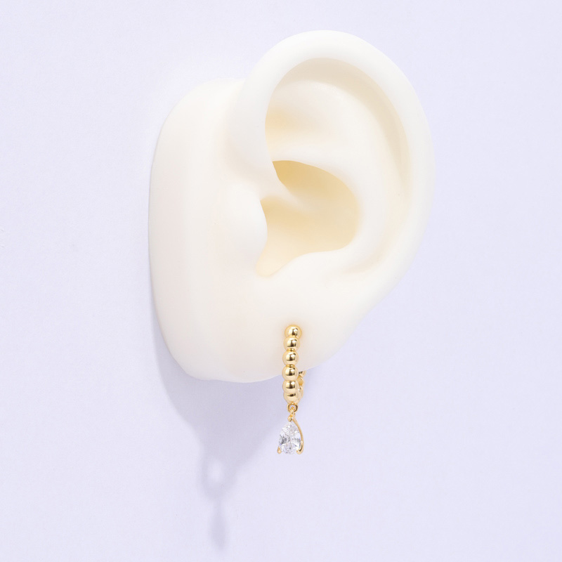 Bead Hoop Earring with drop pear shape Cubic Zircon. Fashionable and suit for everyday wearing.