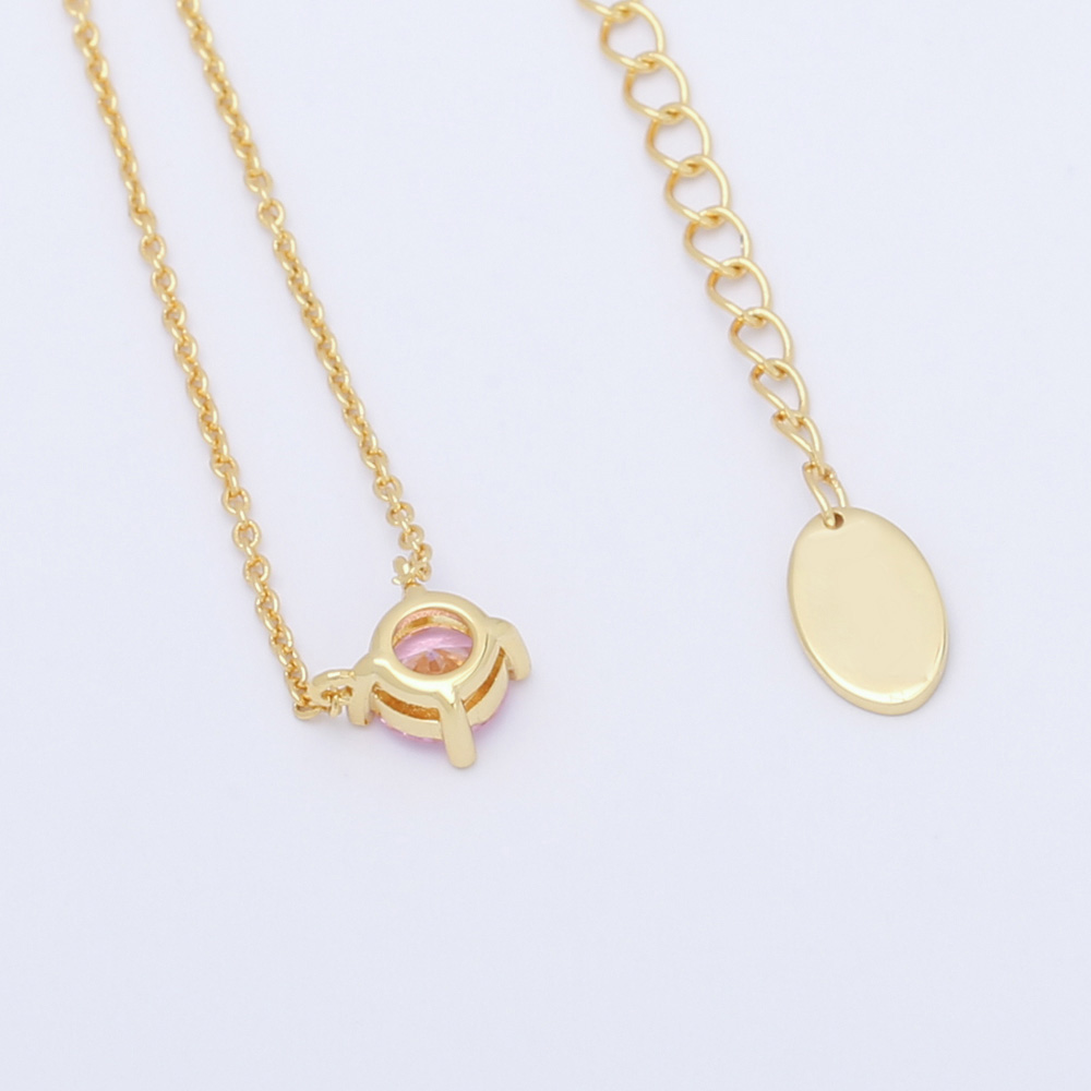 18K YellowPurple Prong Set 4A Cubic Zircon Stone Necklace