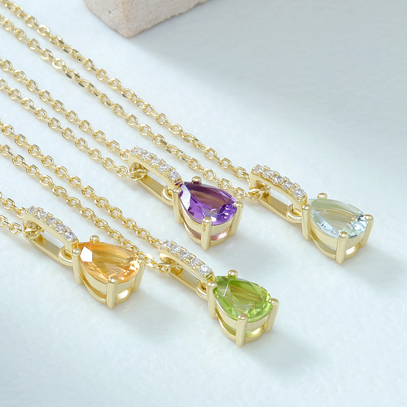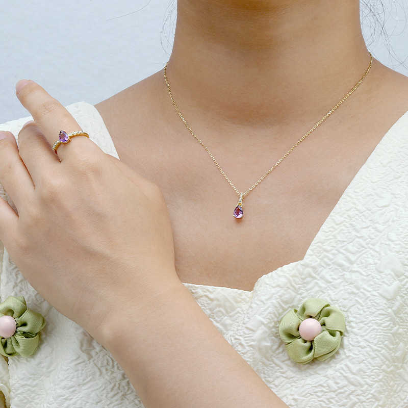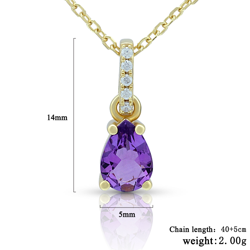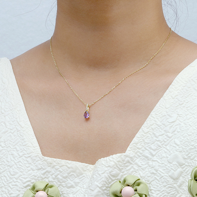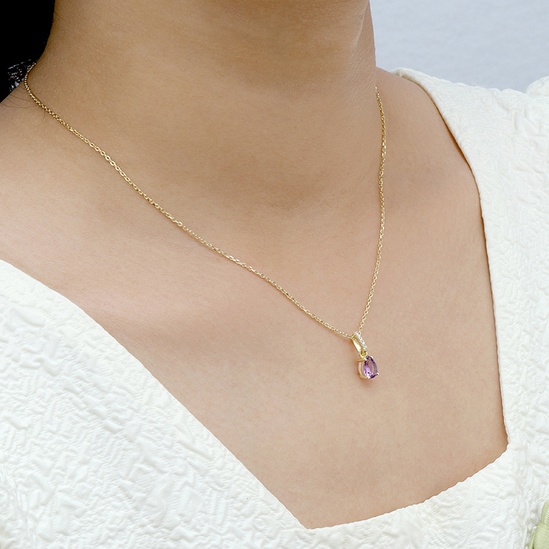 The Pyriform Amethyst Birthstone Necklace is crafted in 925 sterling silver gold plated with fine jewelry craft.
