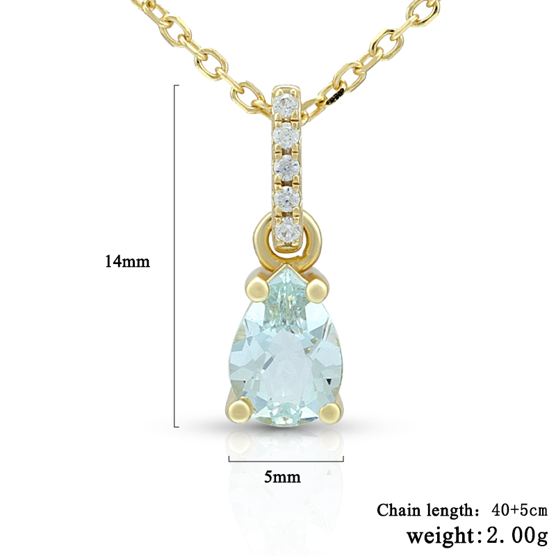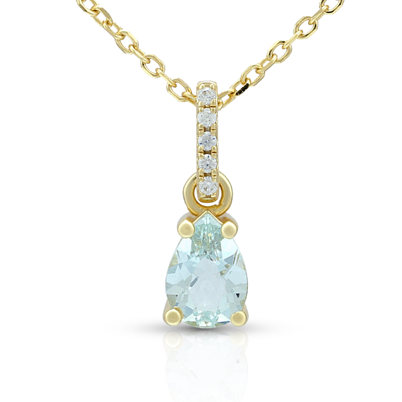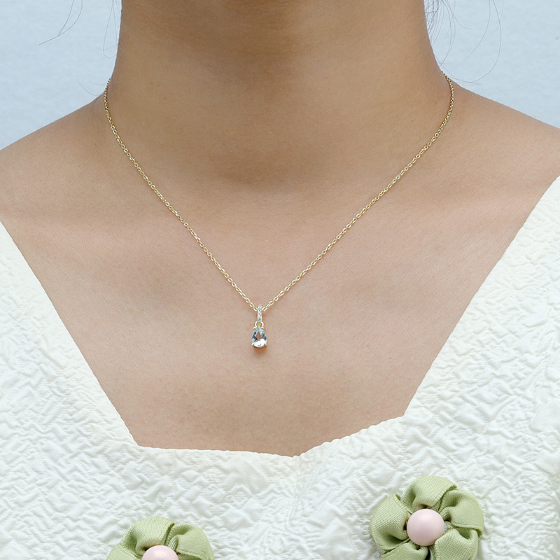 The Pyriform Aquamarine Birthstone Necklace is crafted in 925 sterling silver gold plated with fine jewelry craft.