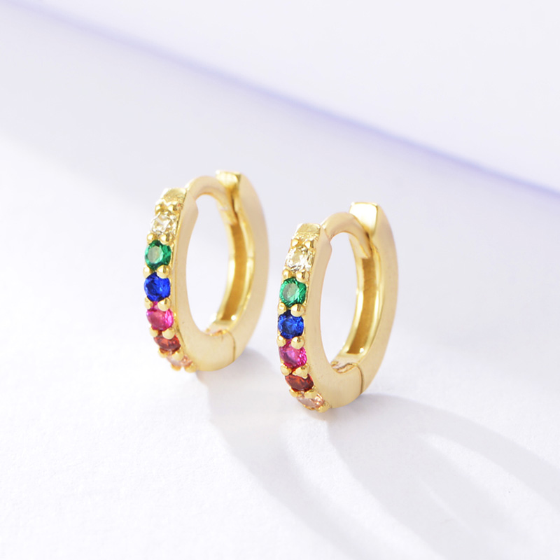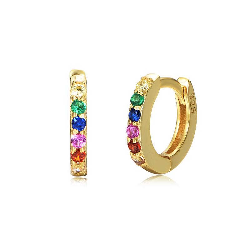 White/YellowRainbow Sterling Silver Huggie Earrings 14K Gold Plated Color Zircons
