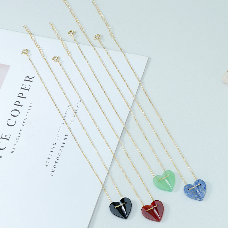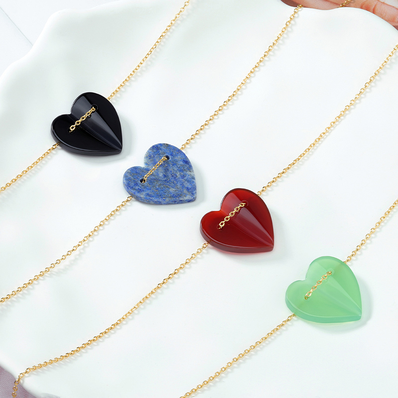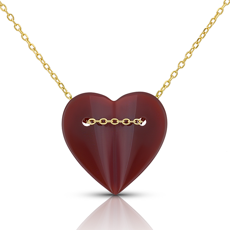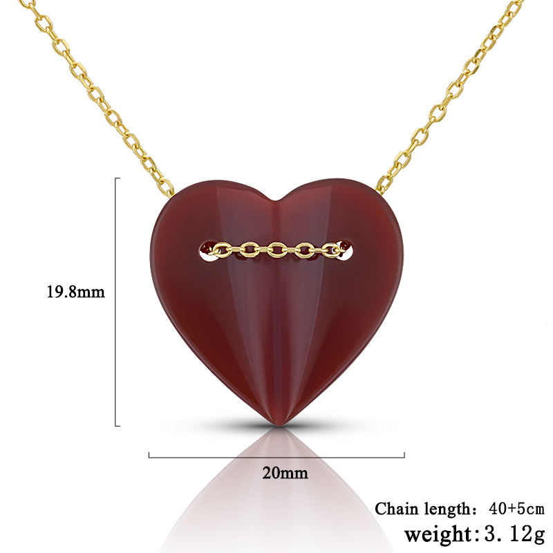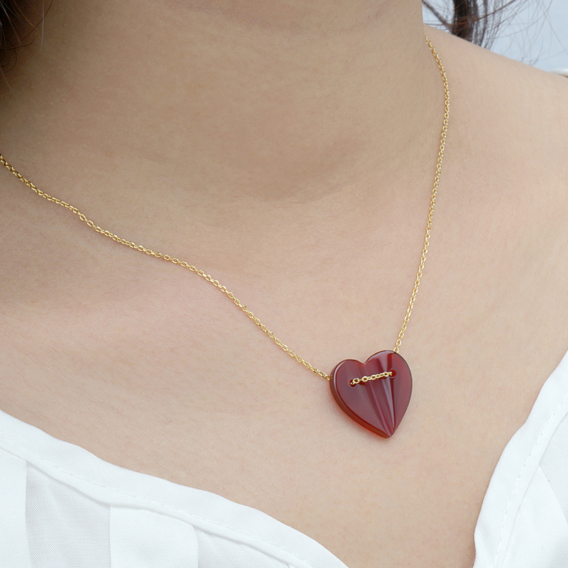 The Red Agate Folded Heart Necklace is crafted in 925 sterling silver gold plated with fine jewelry craft.