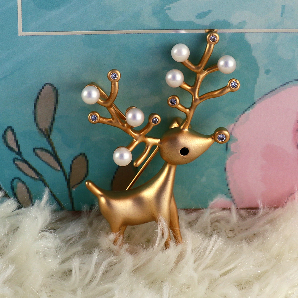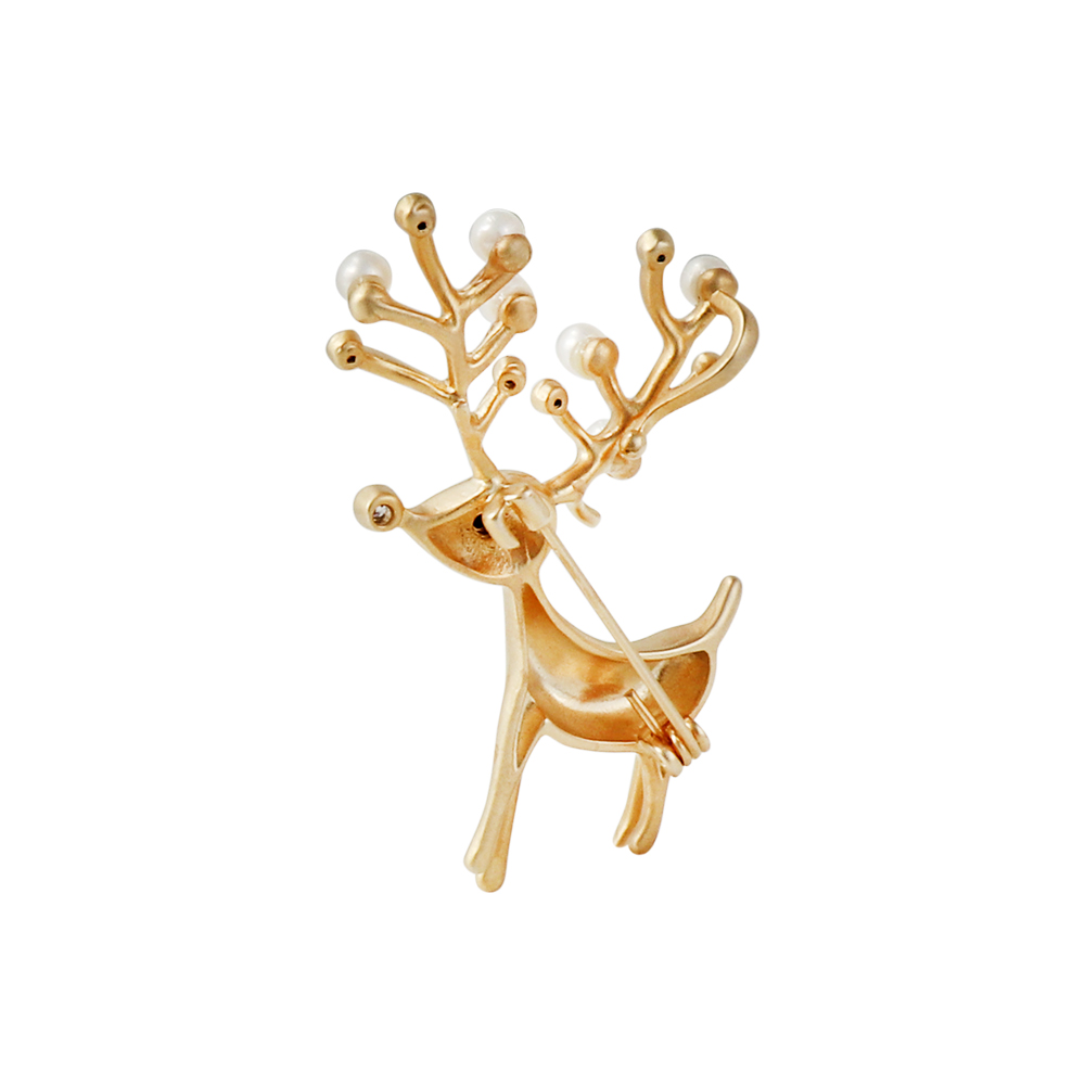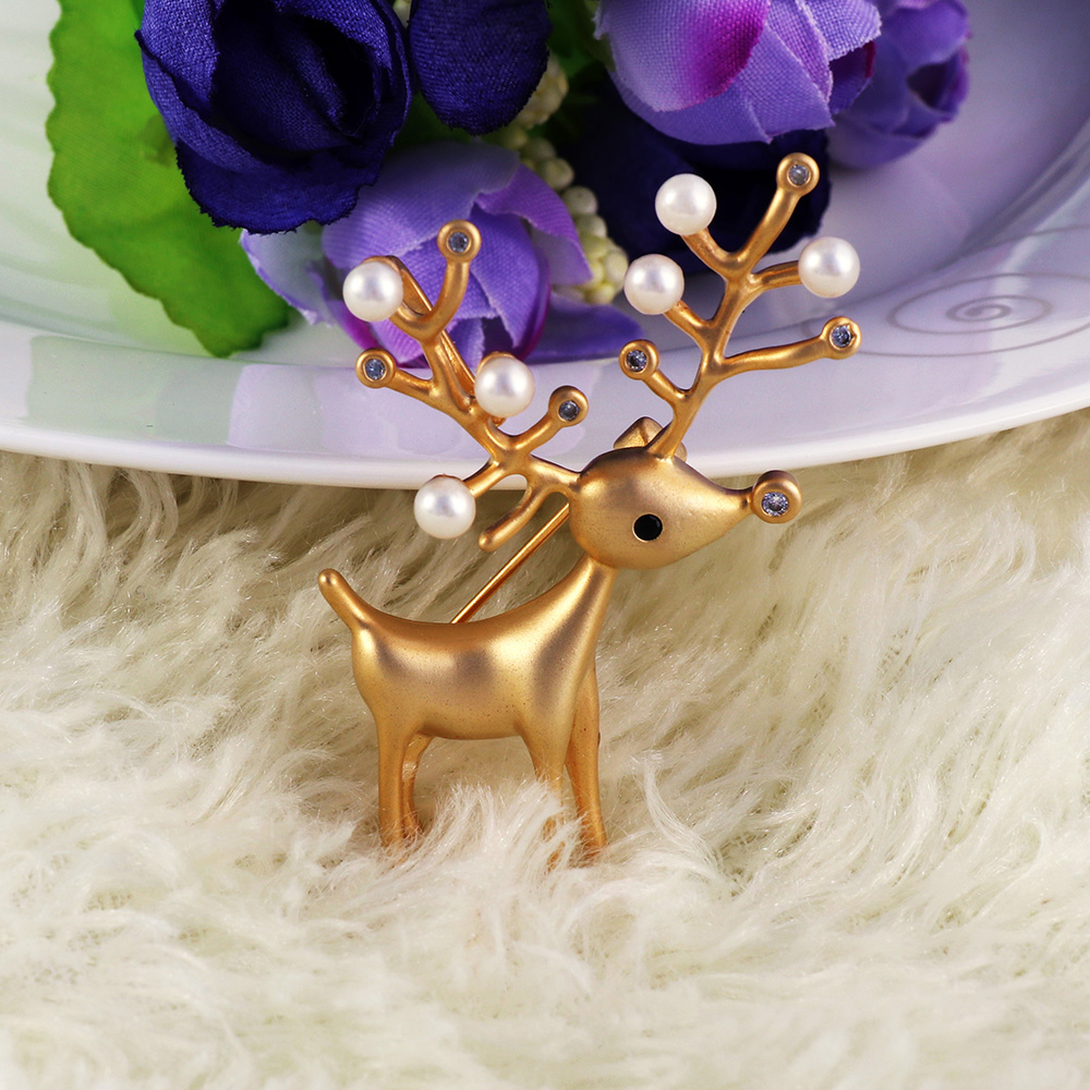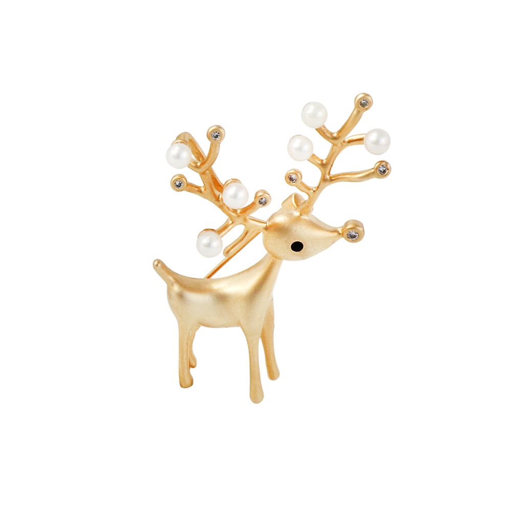 This reindeer jewelry brooches with pin on the back, setting with AAAA cz zircon and freshwater pearl. This whole jewelry brooch design from the animal series.