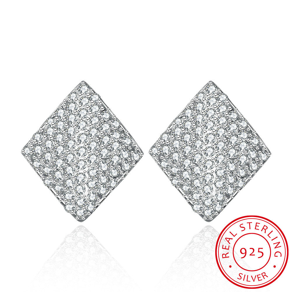 3.0gRhombus CZ 925 Silver Jewelry CZ Stud Earrings