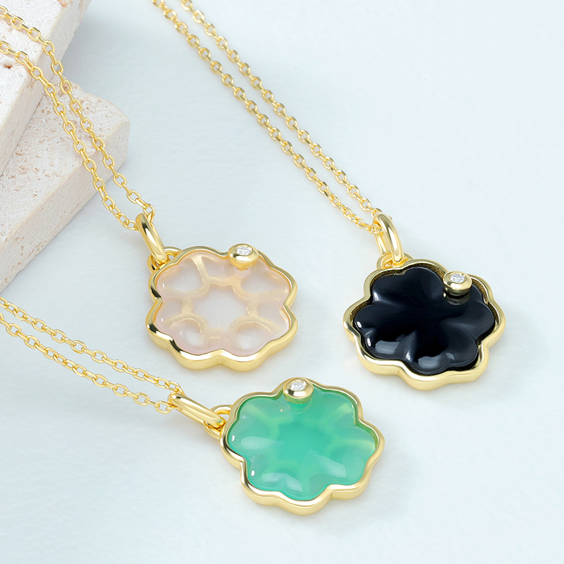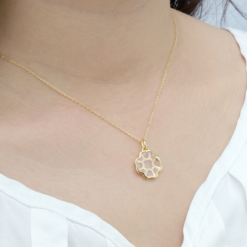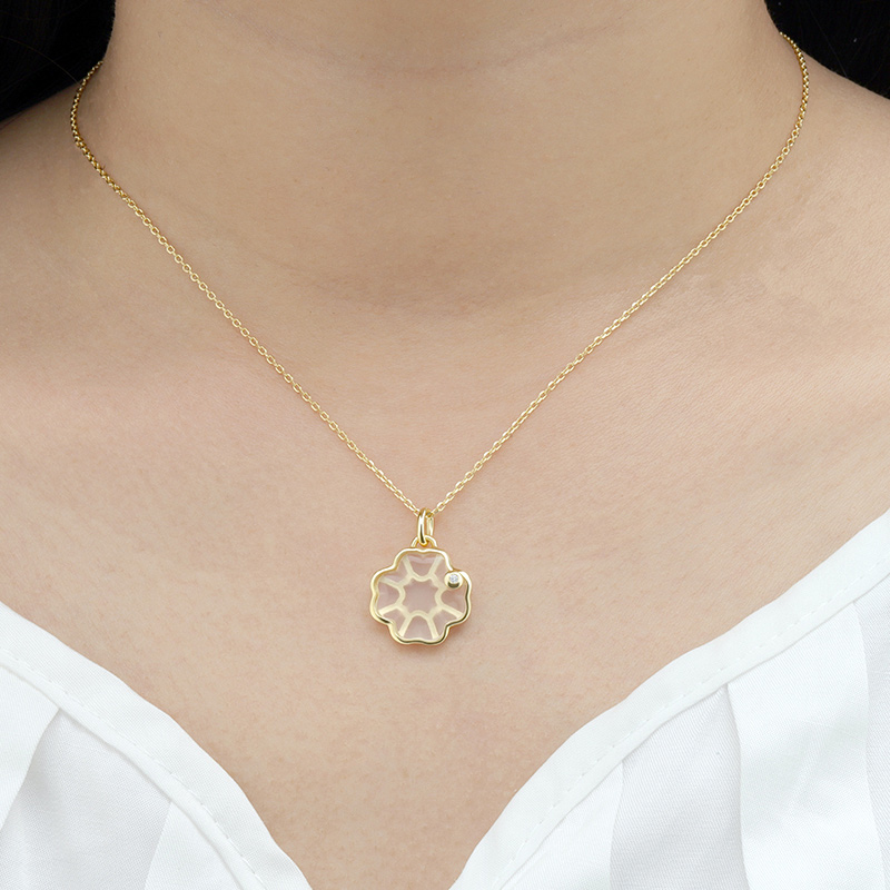 The Rose Quartz Four Leaf Clover Pendant Necklace is crafted in 925 sterling silver gold plated with fine jewelry craft.