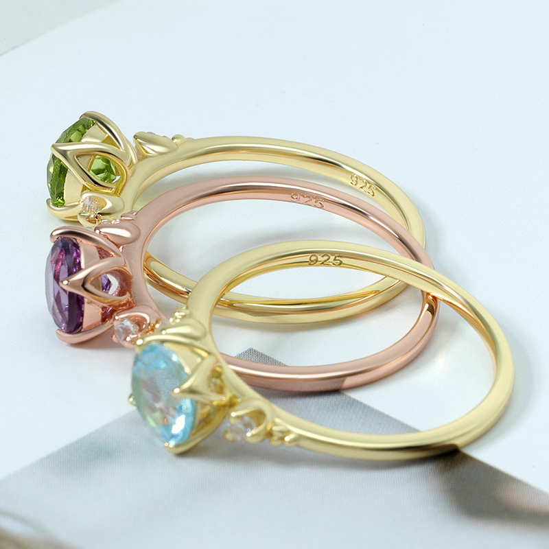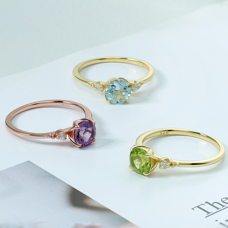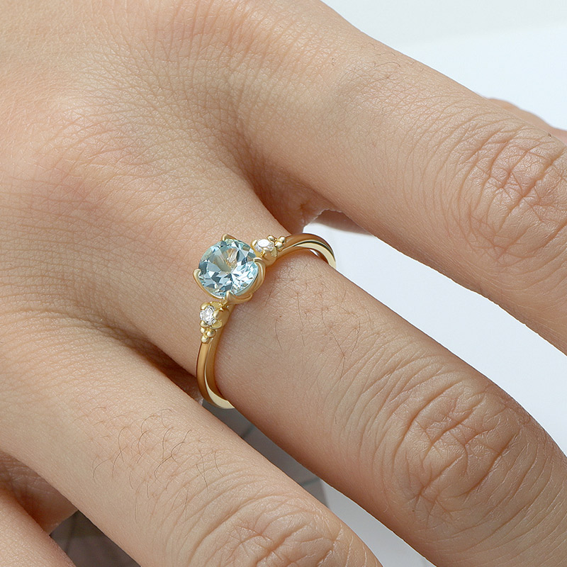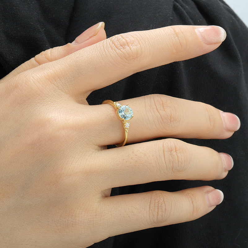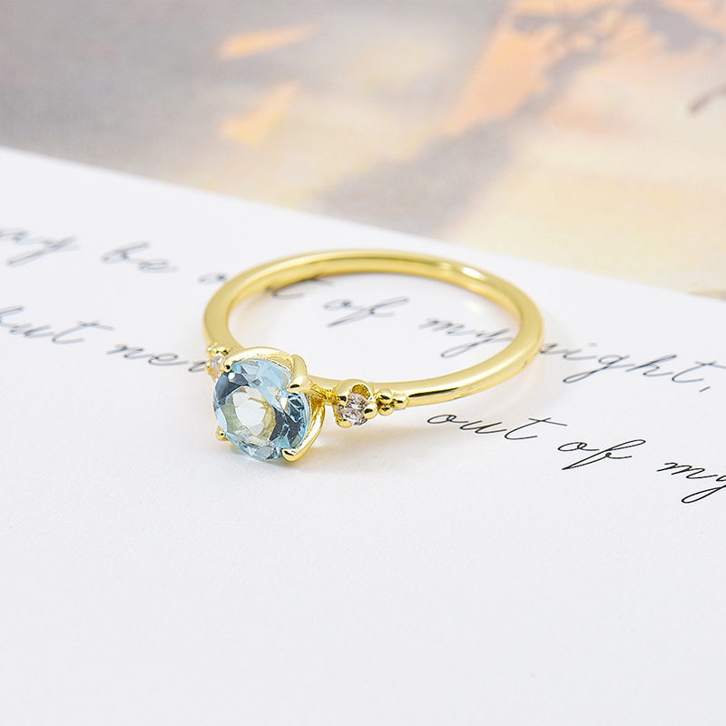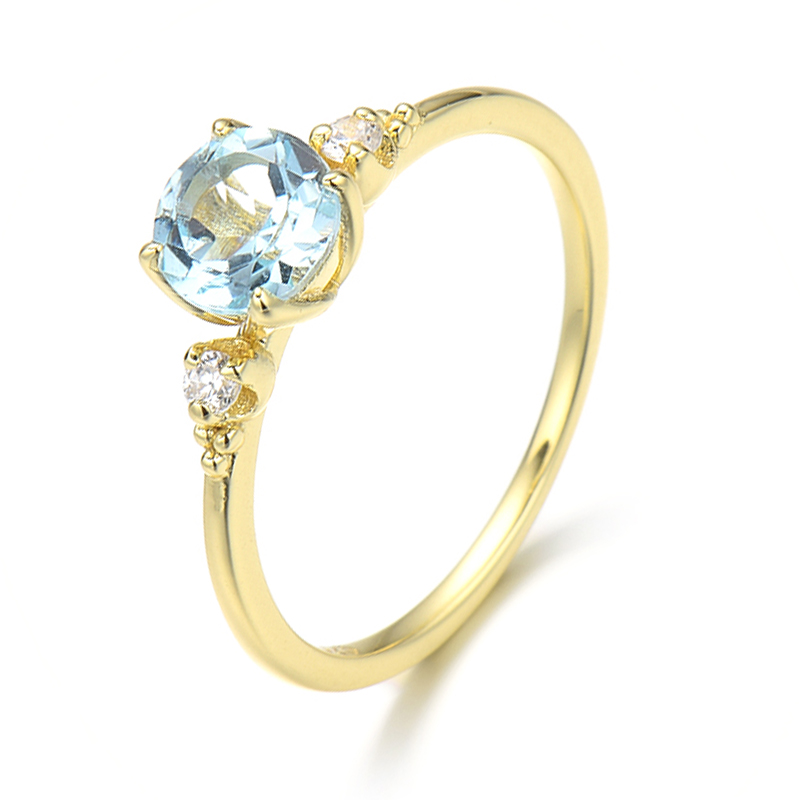 The round blue topaz ring is crafted in 925 sterling silver 14K gold plated with fine jewelry craft.