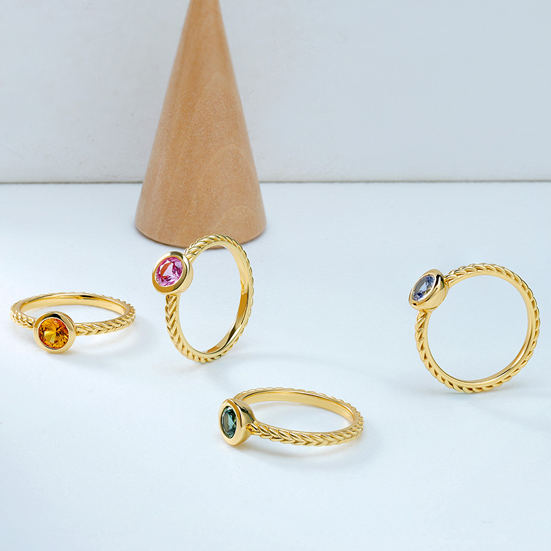 Round Sapphire Ring Rope Band