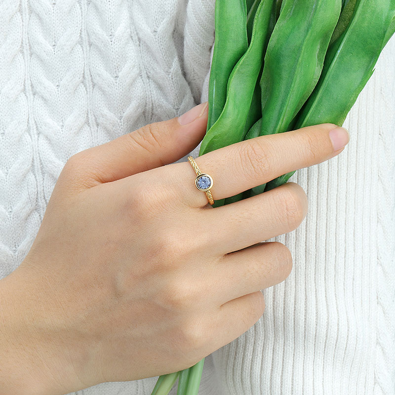 The Round Sapphire Ring is crafted in 925 sterling silver 18K gold plated with fine jewelry craft.