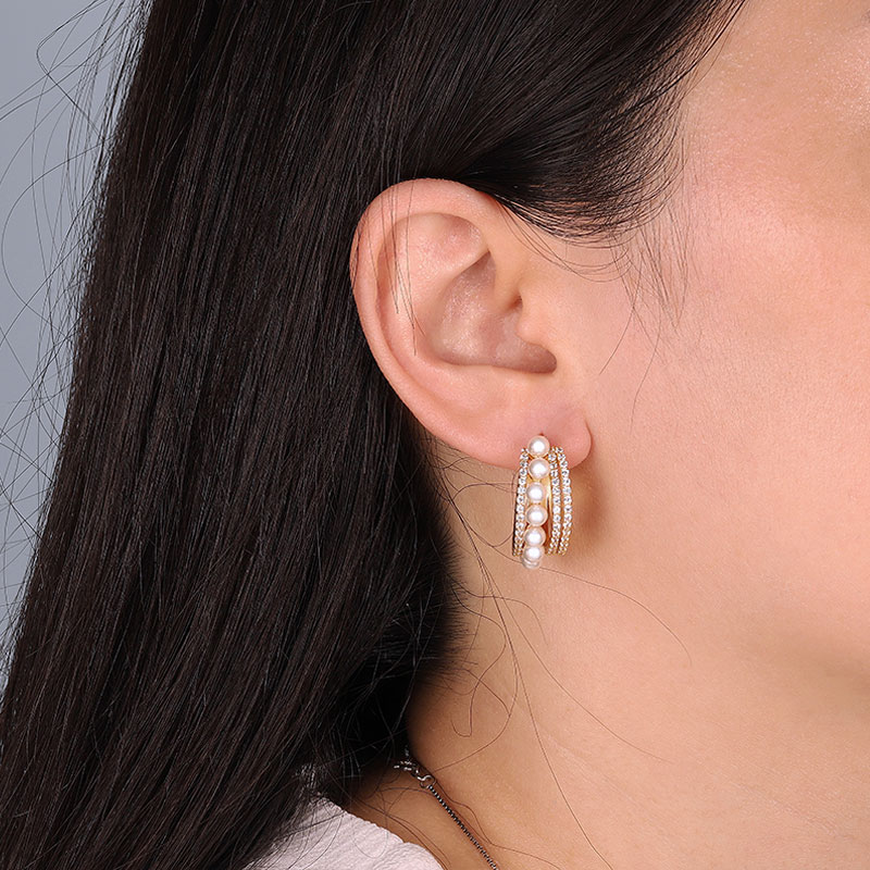 The pearl hoop earring is crafted in 925 sterling silver real gold plated with fine jewelry craft.