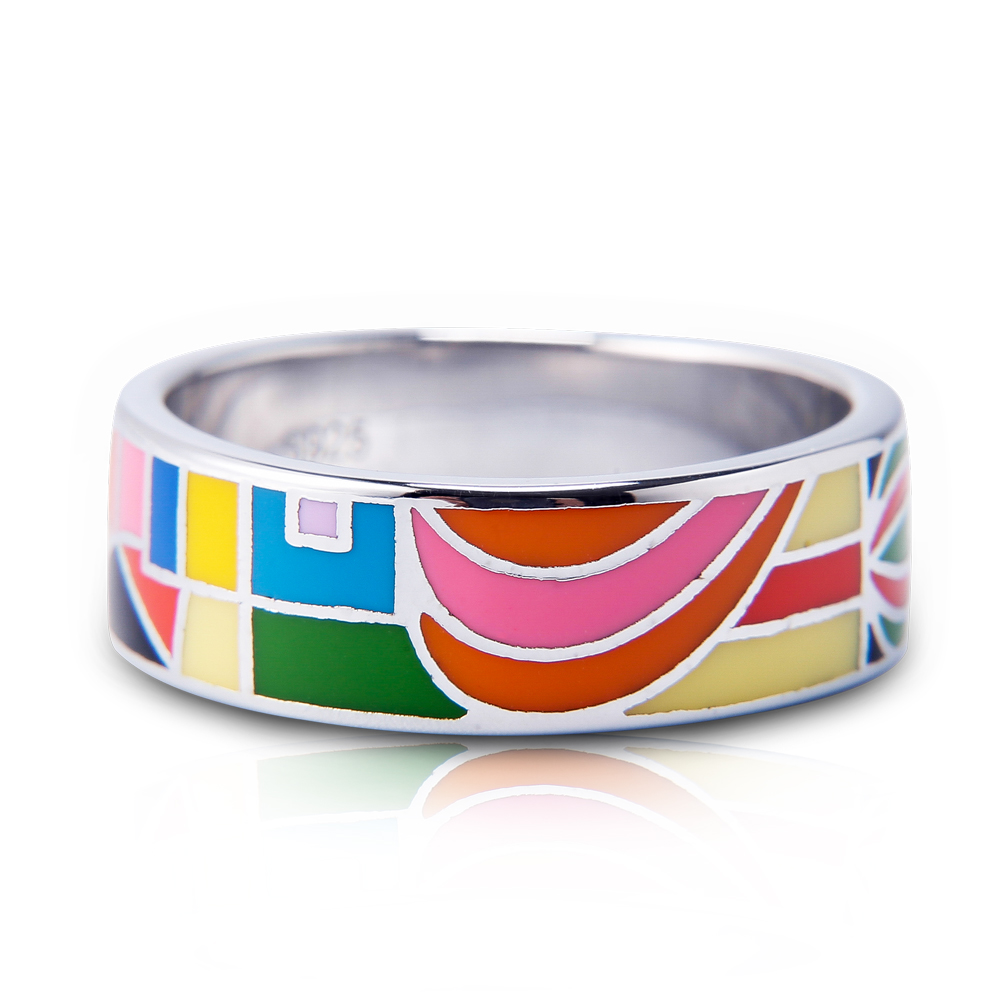 Unrestrained Enamel Jewelry ring bands design with colorful pattern match with vogue dress make your life with charming and energetic.