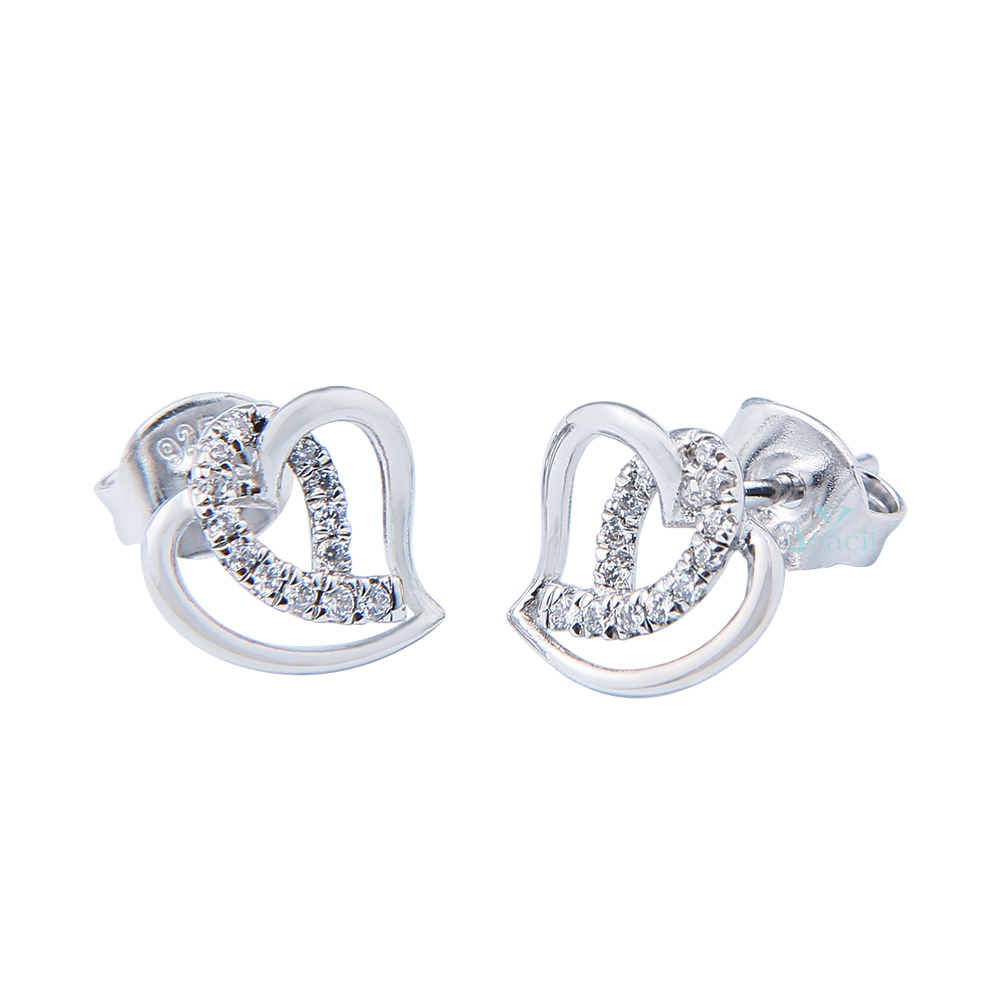 1.02gS925 Women Fashion Love Heart Silver Stud Earring