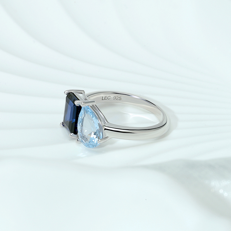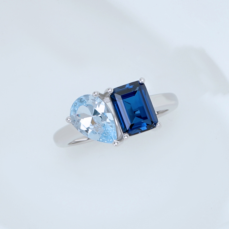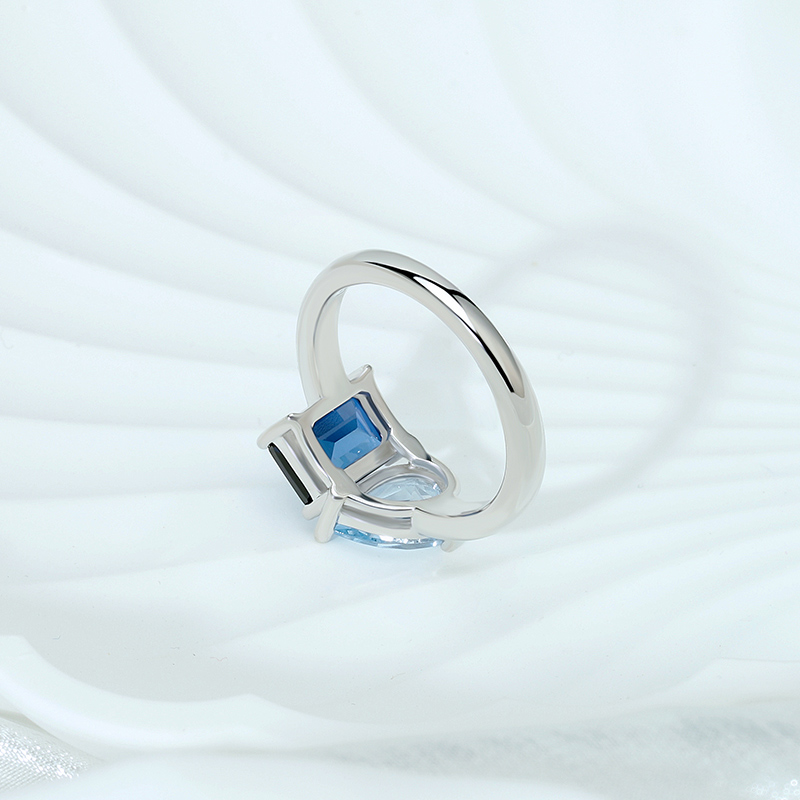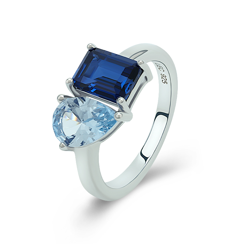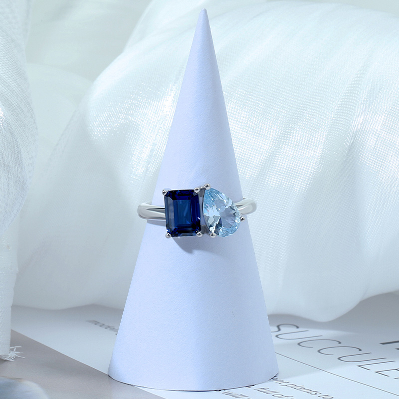 Stone: 6*8mm Created Sapphire/9mm*6mm Created Aquamarine