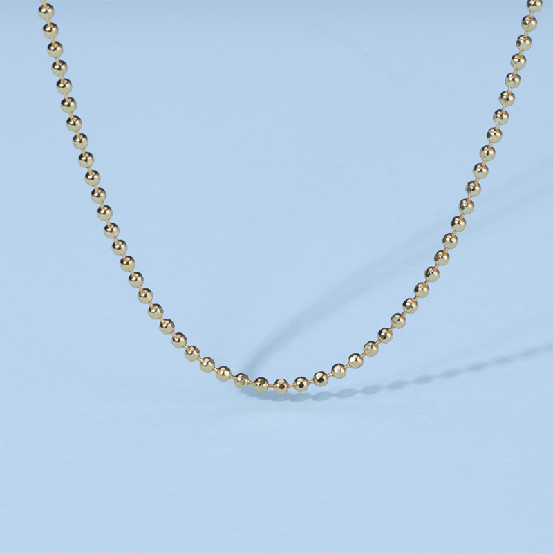The silver bead chain is crafted in 925 sterling silver 18k yellow gold plated with fine jewelry craft.