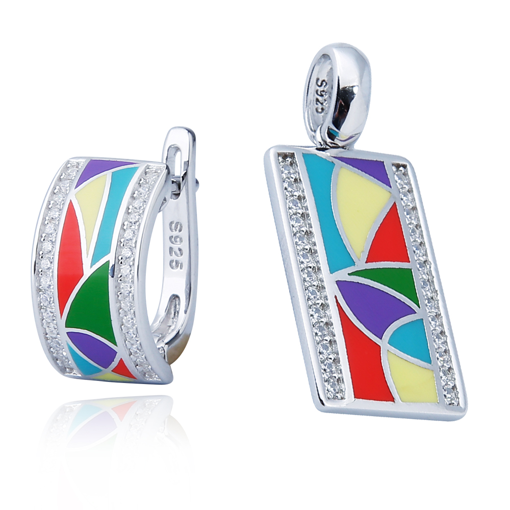 Colorful Enamel Sterling Silver Earring with geometry design.
