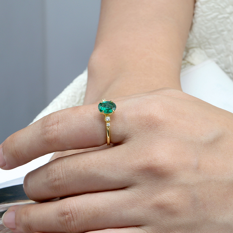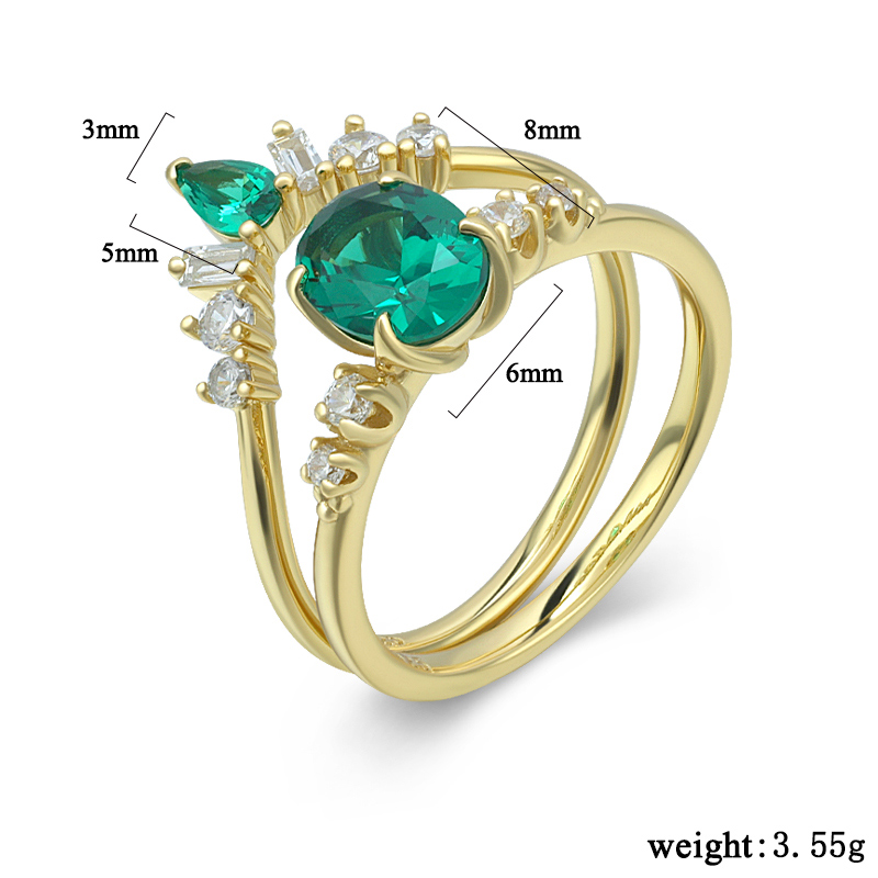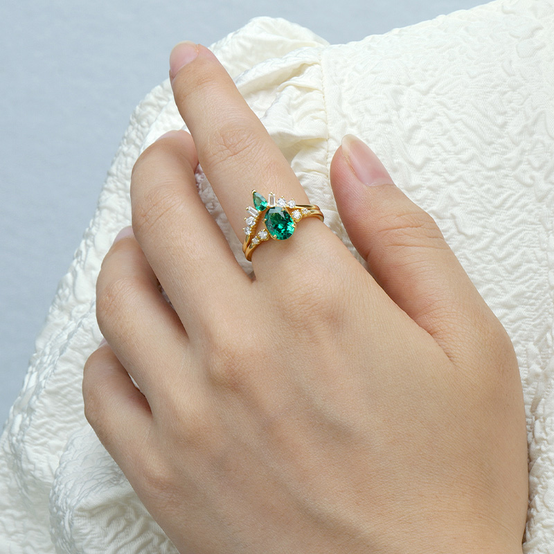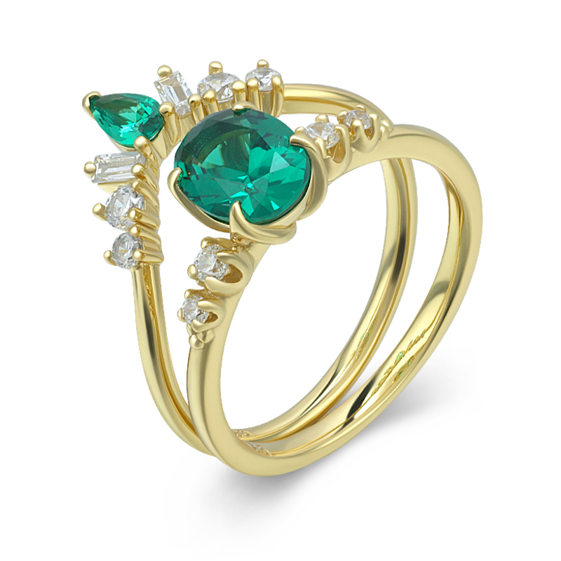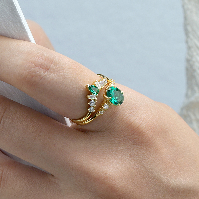 The Simulate Emerald Engagement And Wedding Ring Sets are crafted in 925 sterling silver gold plated with fine jewelry craft.