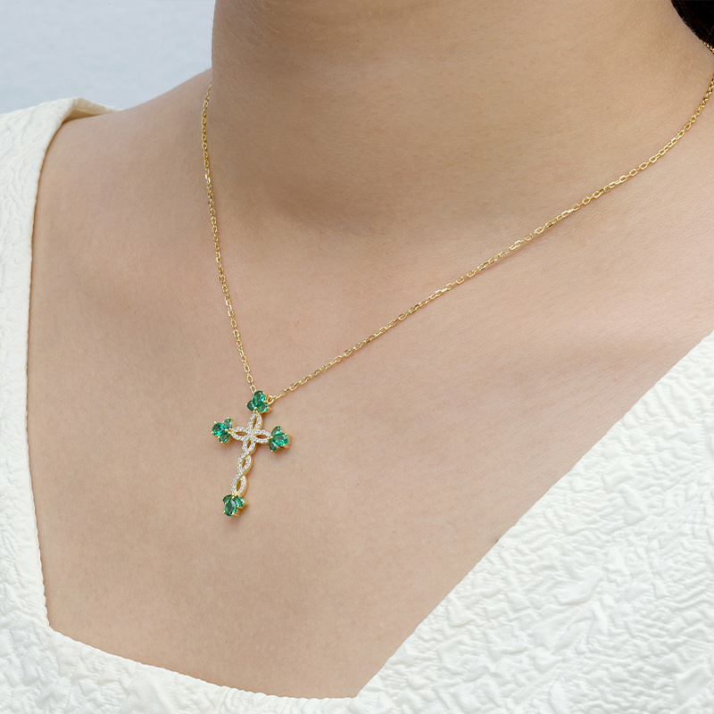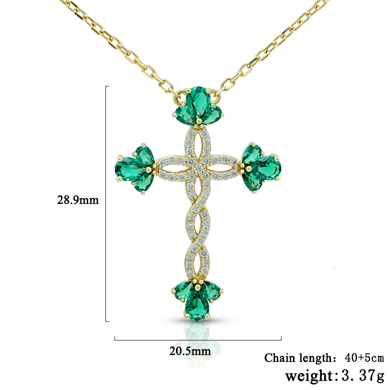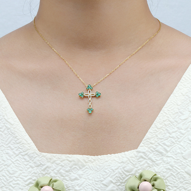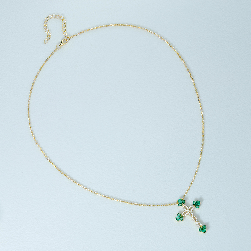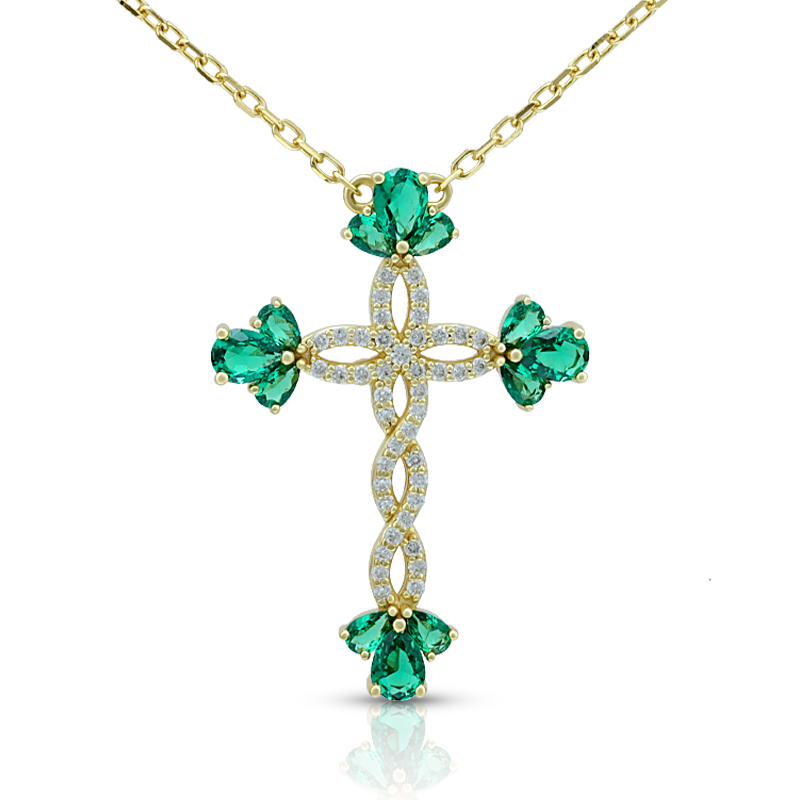 The Simulate Flower Emerald Cross Necklace is crafted in 925 sterling silver gold plated with fine jewelry craft.