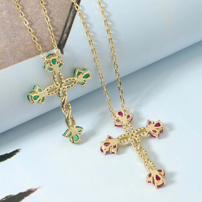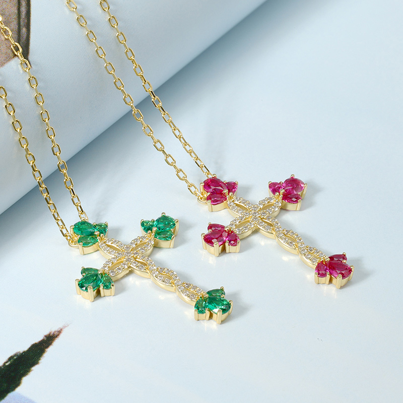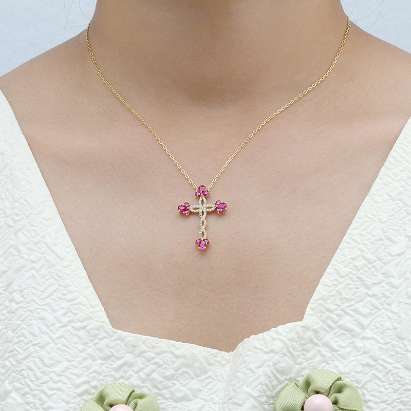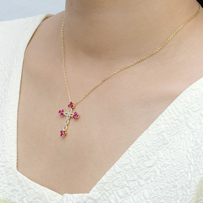 AvailableSimulate Flower Ruby Cross Necklace