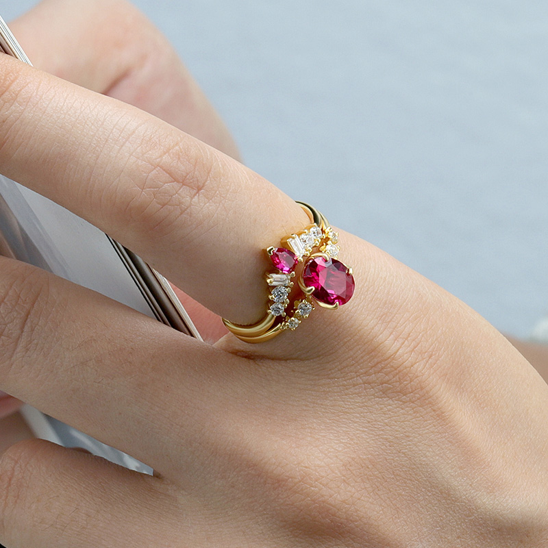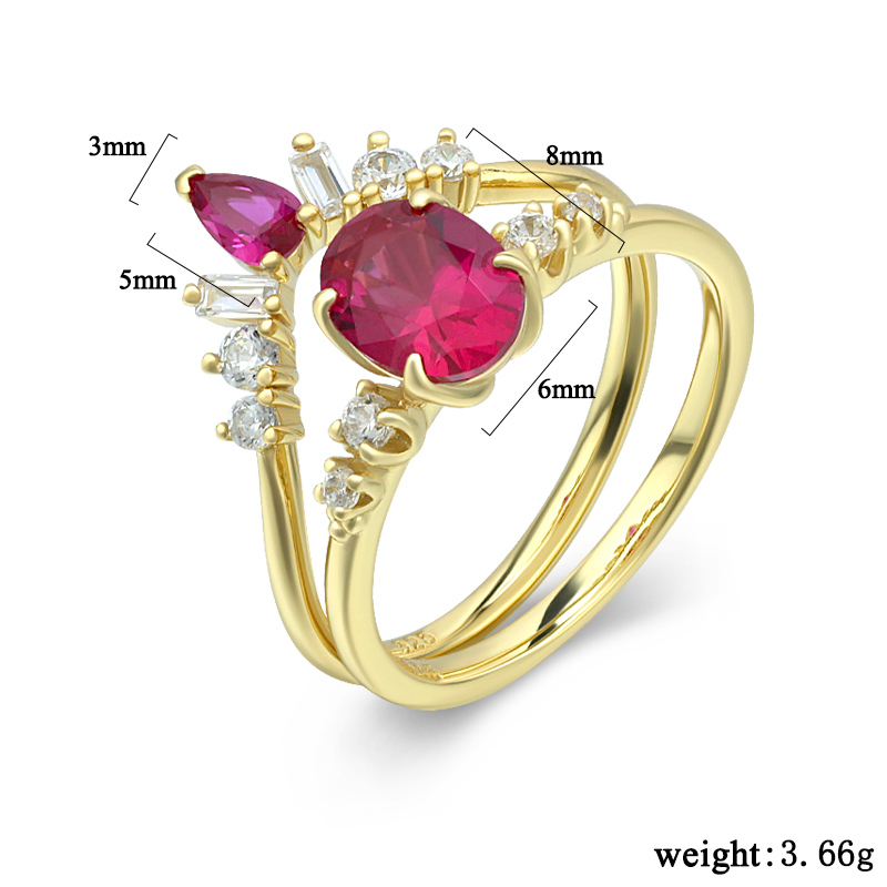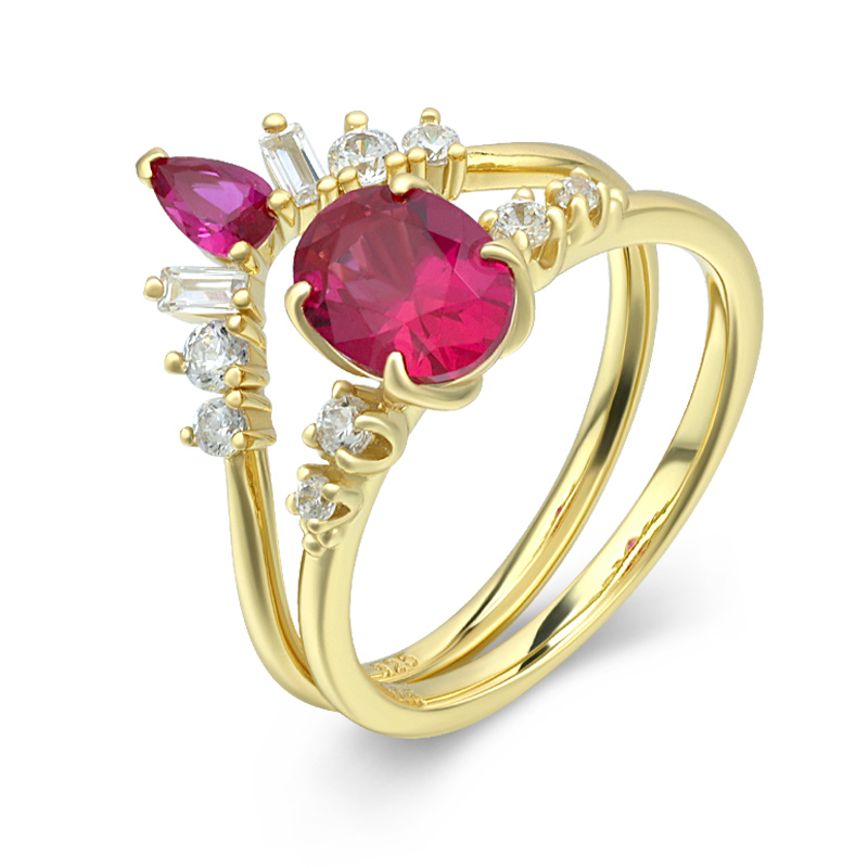 The Simulate Ruby Engagement And Wedding Ring Sets are crafted in 925 sterling silver gold plated with fine jewelry craft.