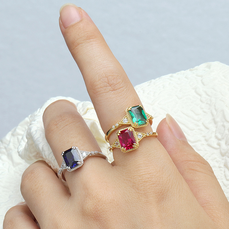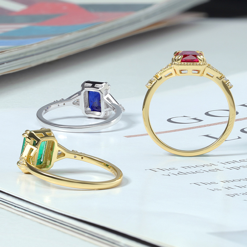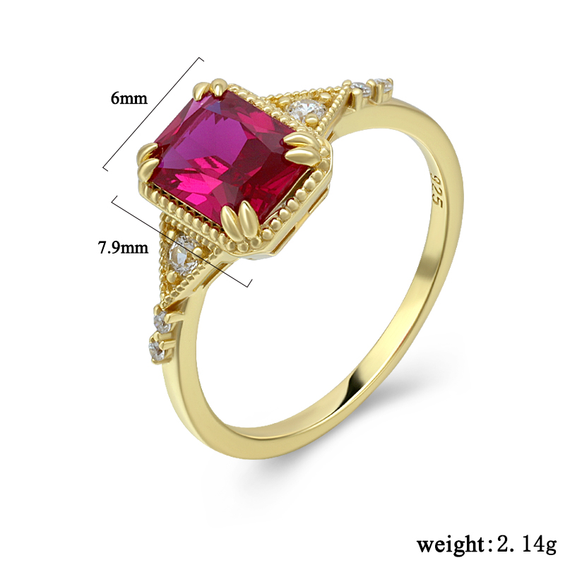 The Simulate Ruby Octagon Ring is crafted in 925 sterling silver gold plated with fine jewelry craft.