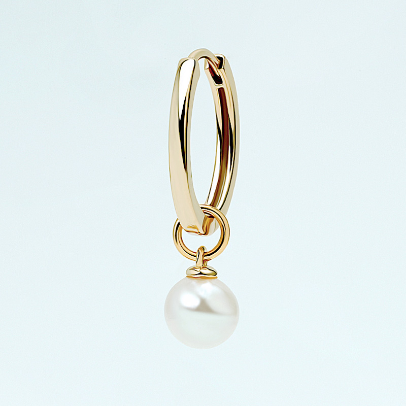 The Single Pearl Charm Hoop is crafted in 925 sterling silver 14k gold plated with fine jewelry craft.