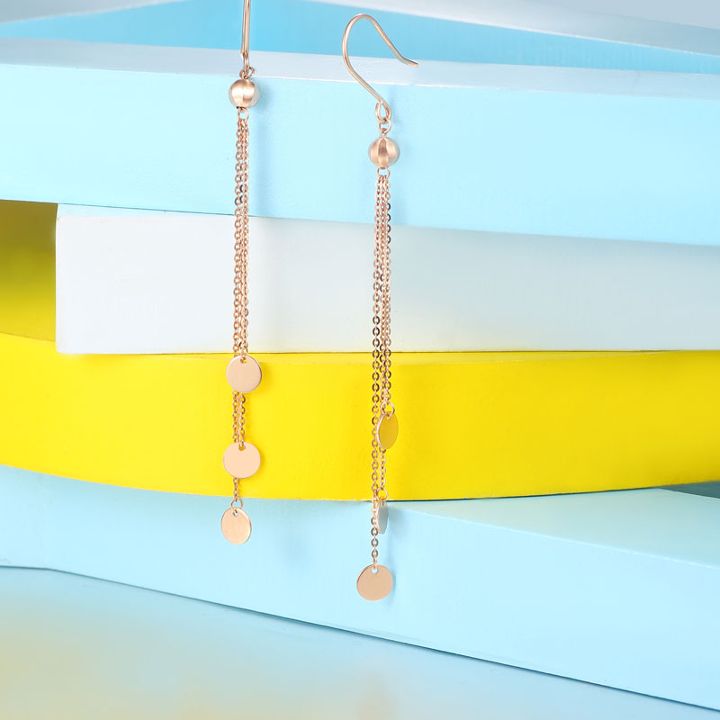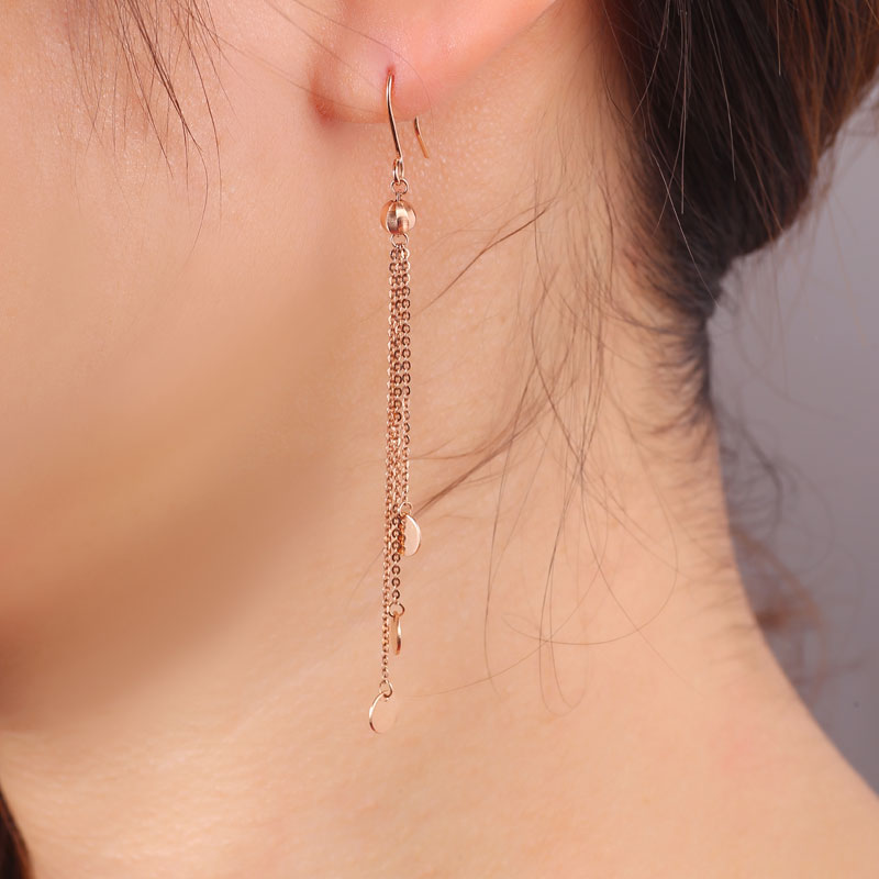 2.03The tassel design of this gold chain drop earrings is visually elongated longitudinally. The earrings are dotted with dreamy bubbles, light and romantic.