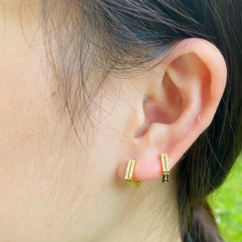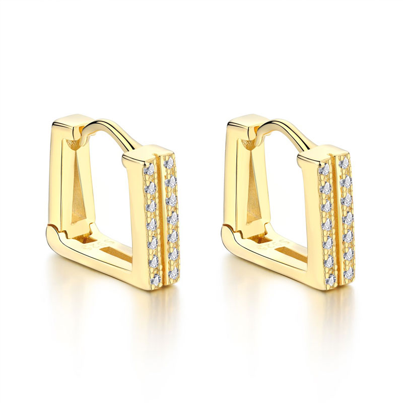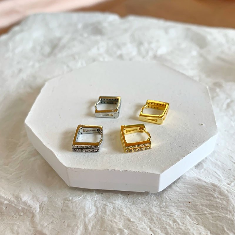The small square hoop earrings are crafted in 925 sterling silver 18k yellow/white gold plated, 5A zircon pave set with fine jewelry craft.