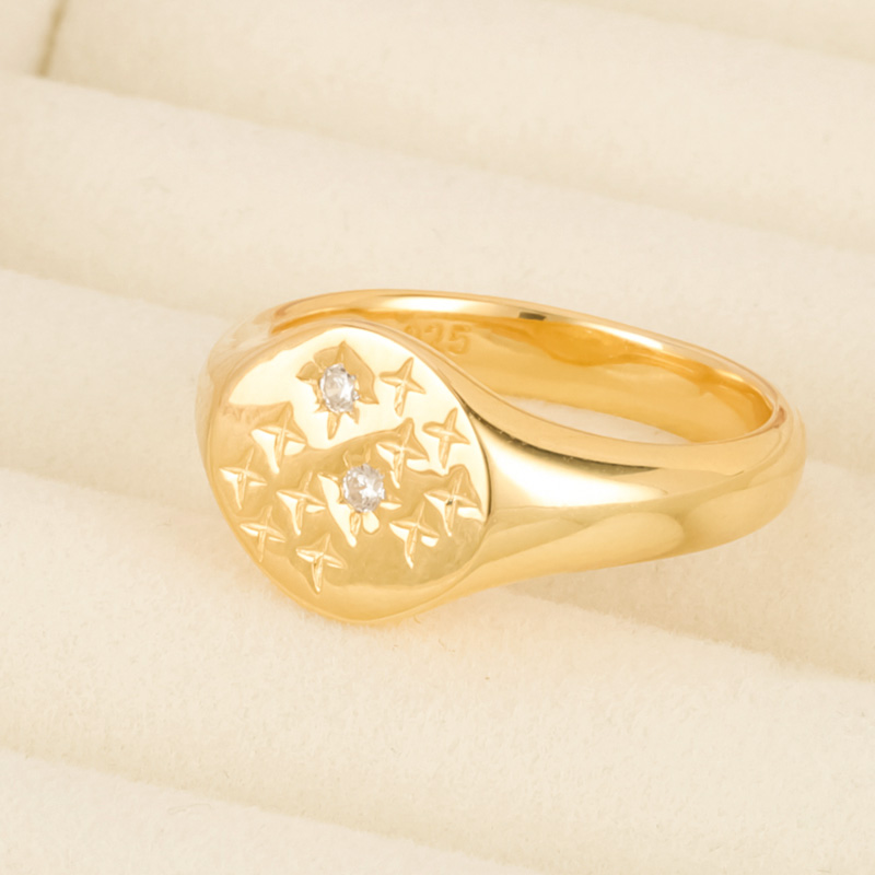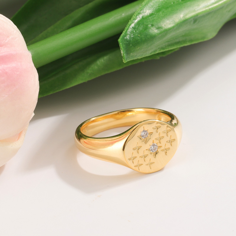 The star signet ring is crafted in high quality 100% real 925 sterling silver in gold plated, rhodium plated or gold vermeil in fine jewelry craft. They are durable and not tarnish.