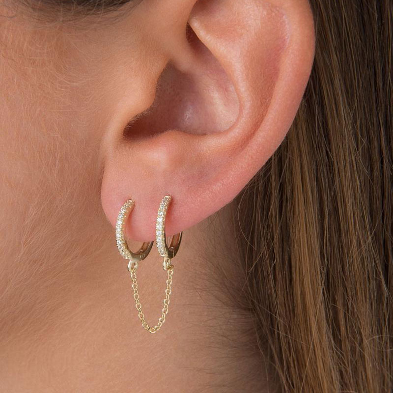 Huggie EarringSterling Silver Double Huggie Earring Pave CZ Handcuff Chain