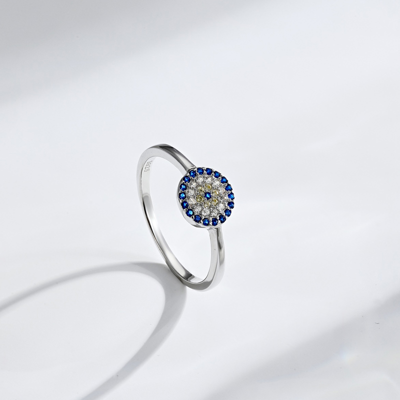 The sterling silver evil eye ring is crafted in 925 sterling silver real 18K white gold plated with fine jewelry craft.