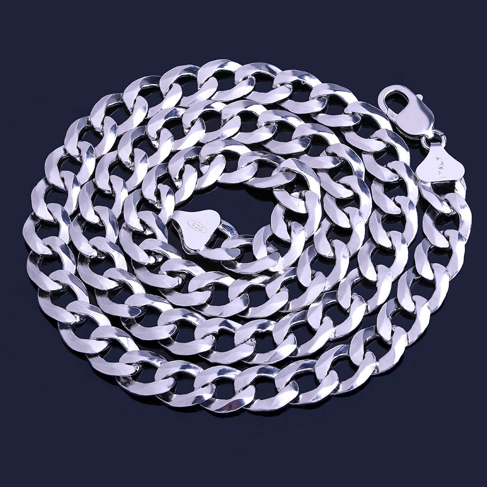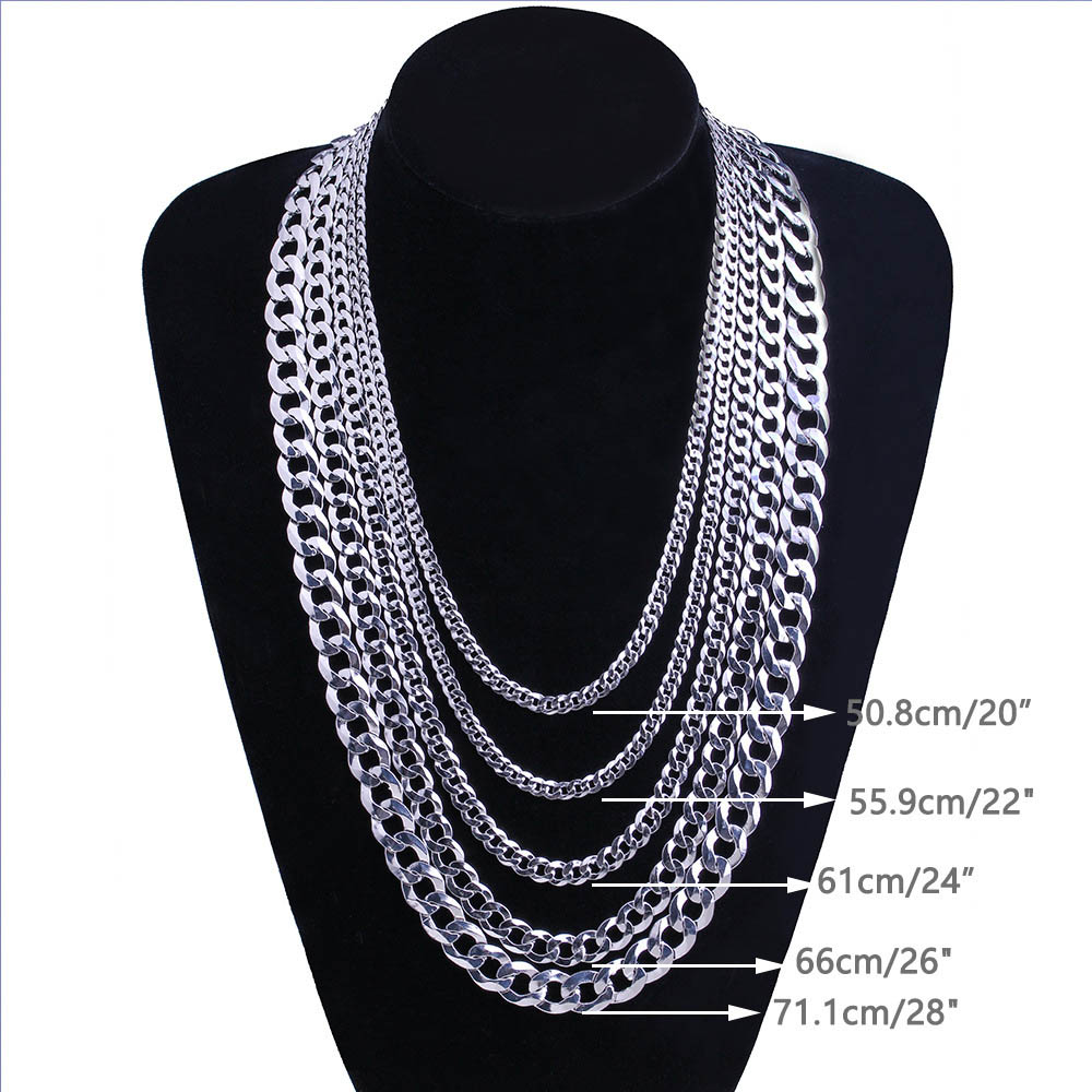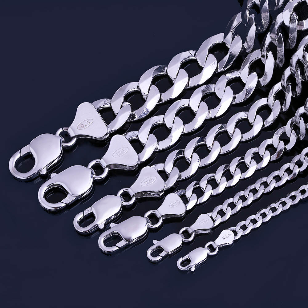 The flat Sterling silver men's chain necklace is made of 925 sterling silver with Italian craft. Different width size optional.
