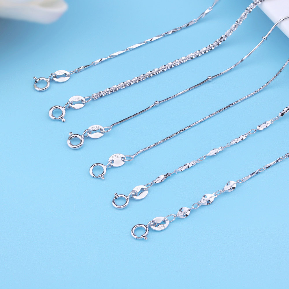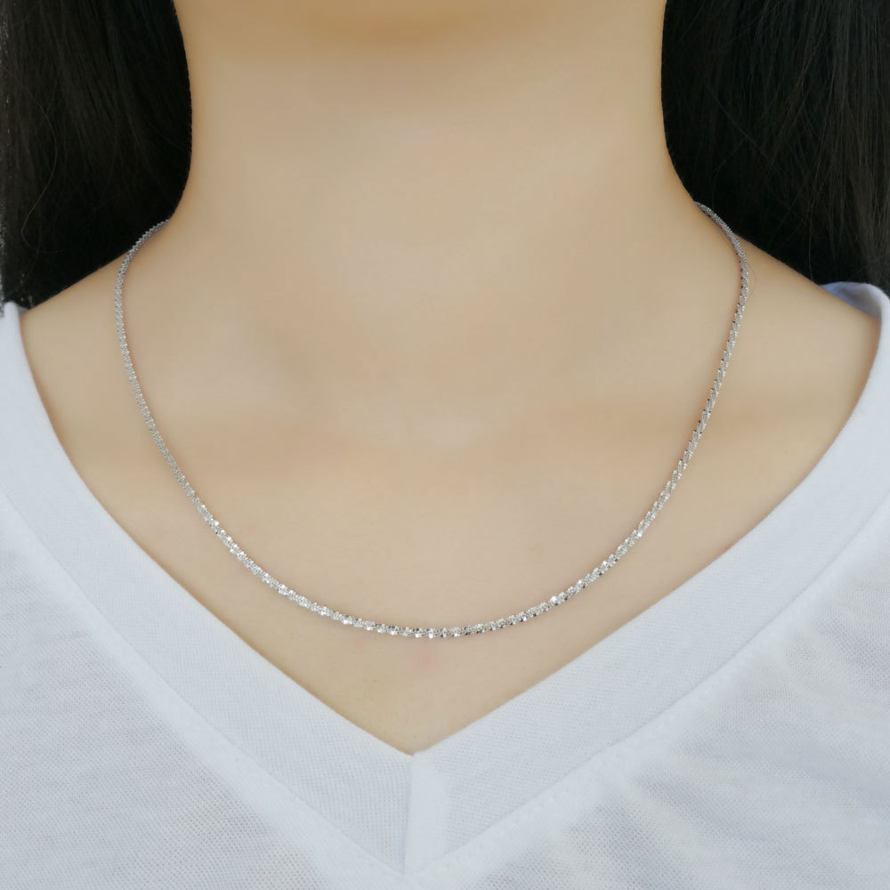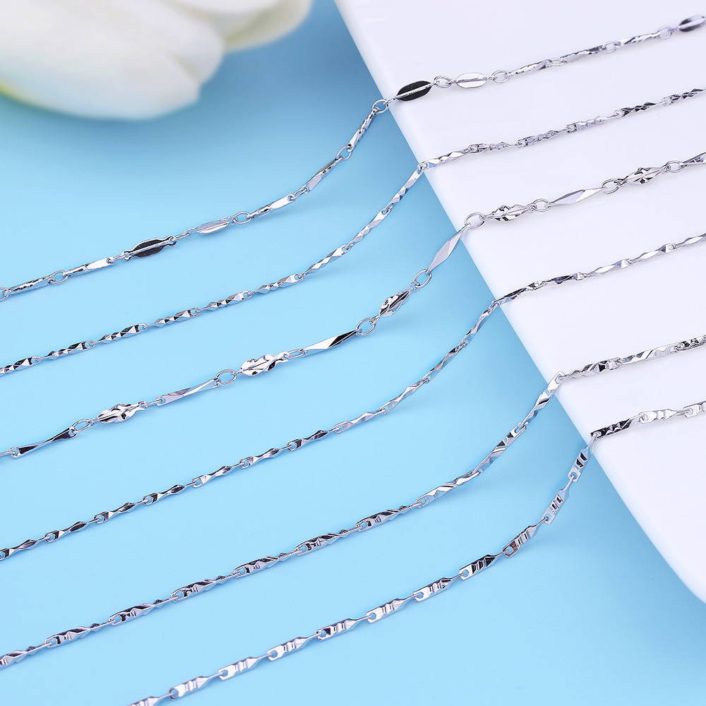 This S925 sterling silver link chain is plated with 18K white gold and without gemstone setting, but