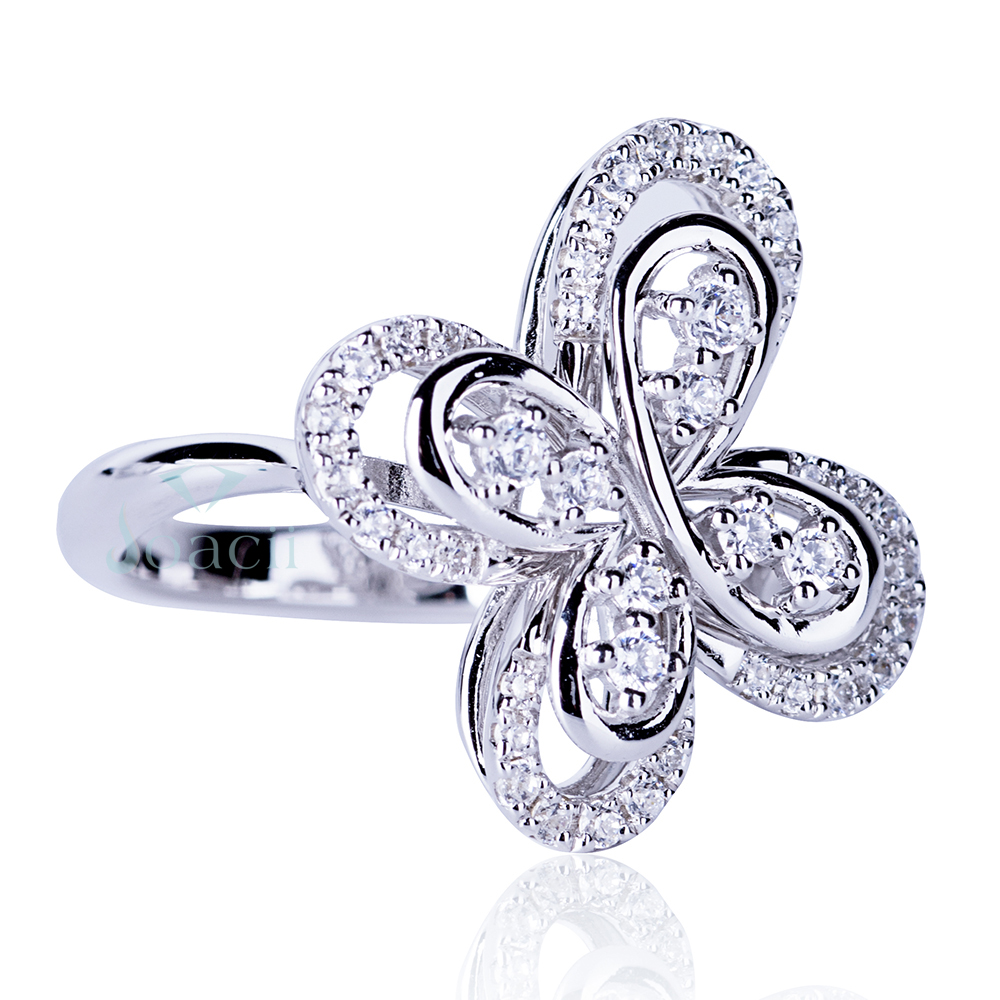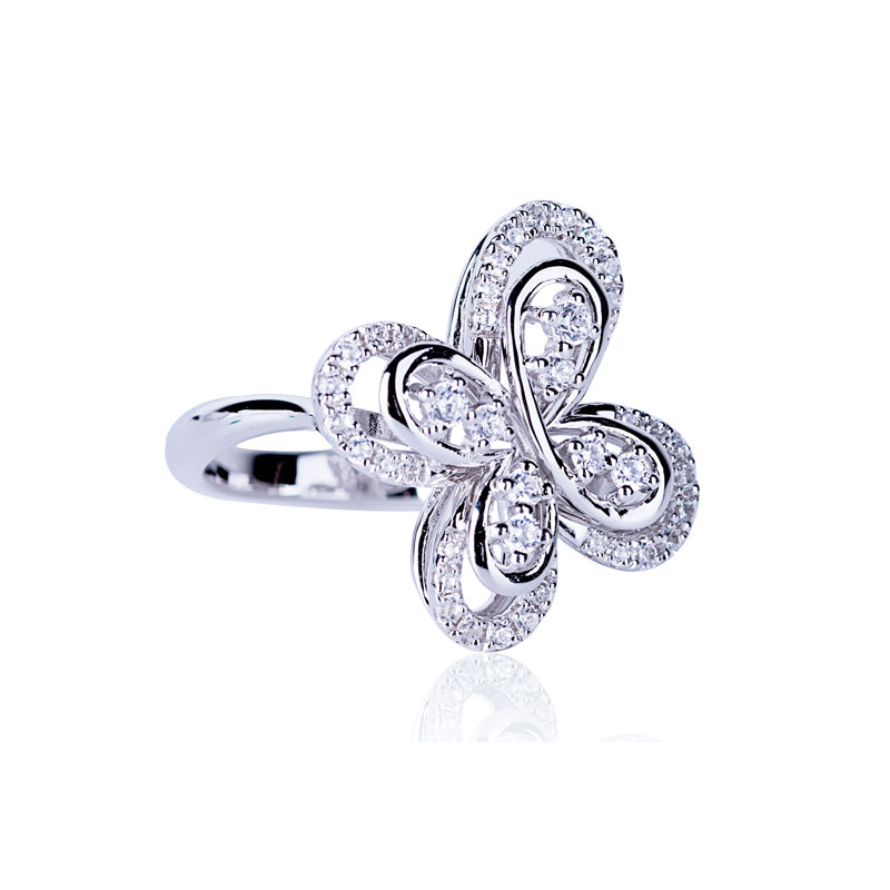 WhiteStylish Butterfly Design 925 Sterling Silver Jewelry Ring