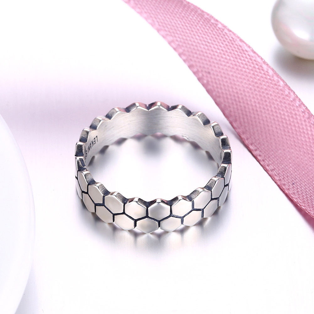 This S925 sterling silver cluster ring with hexagon design is chic and Suitable for many occasions.