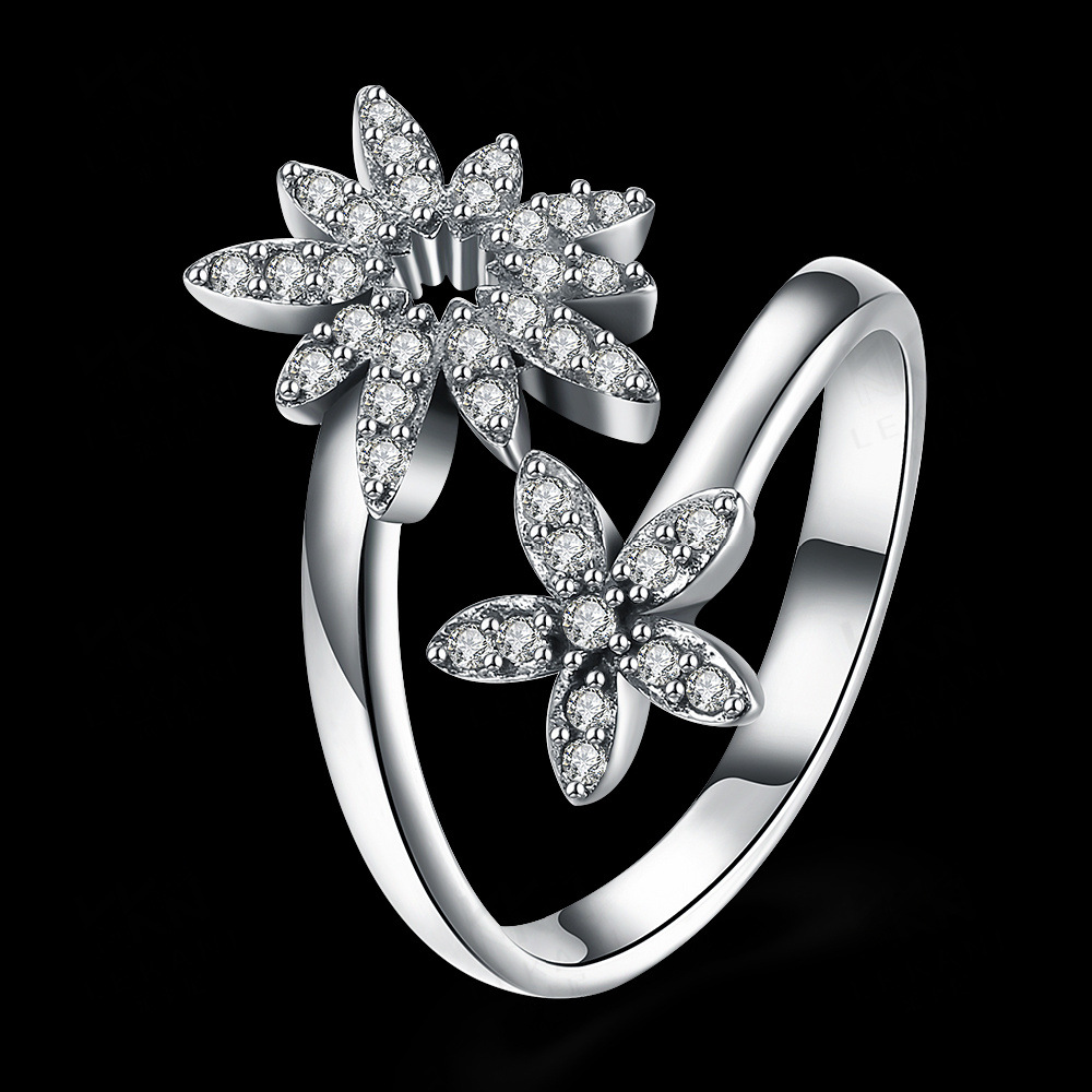 3.3gStylish Two Flowers S925 Sterling Silver Ring Jewelry