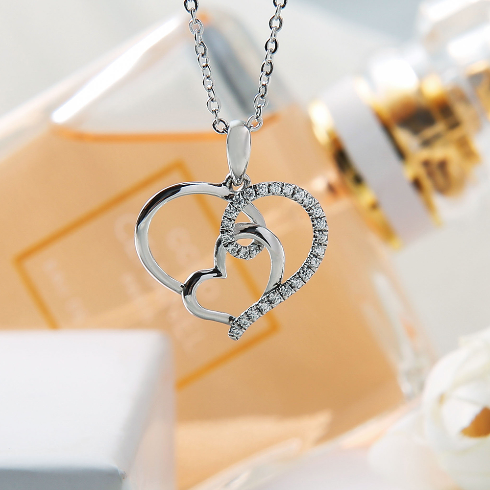 Love heart necklace pendant is made of sterling silver and setting with AAA cubic zircon stone with white gold color.