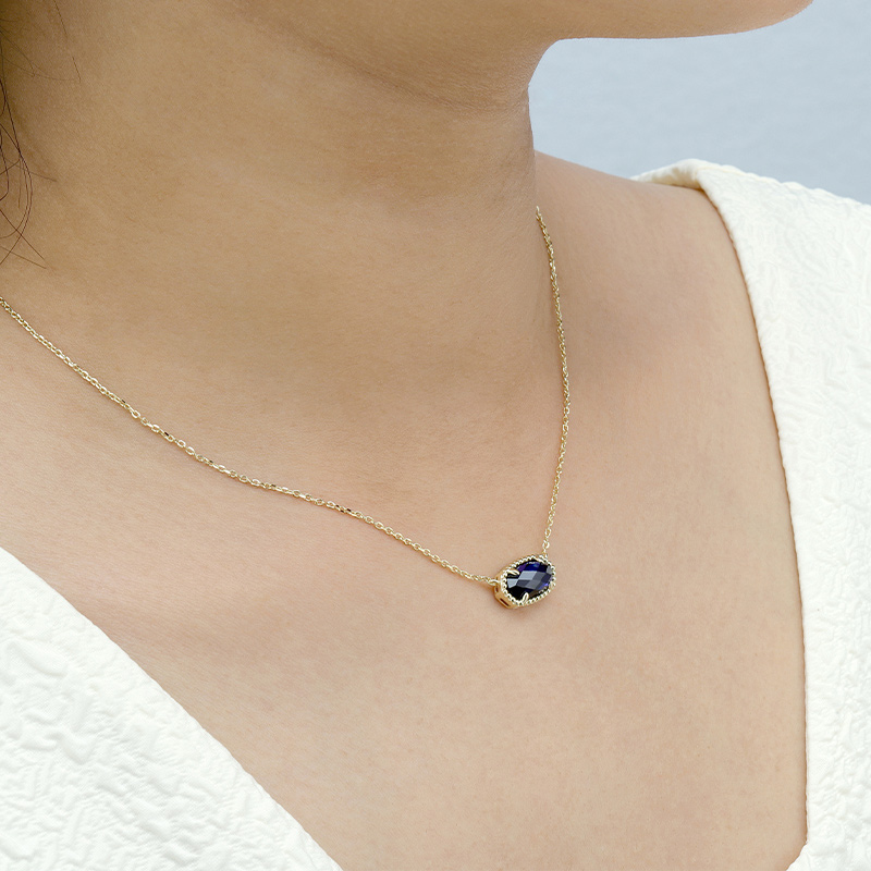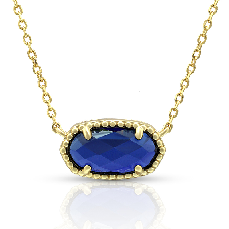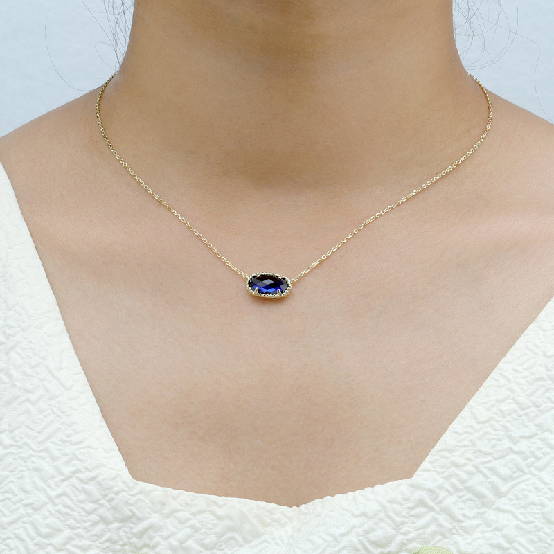 The Synthetic Blue Corundum Oval Pendant Necklace is crafted in 925 sterling silver gold plated with fine jewelry craft.