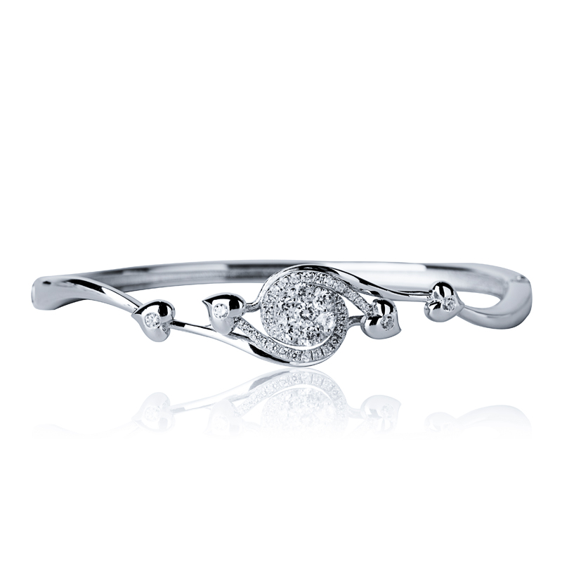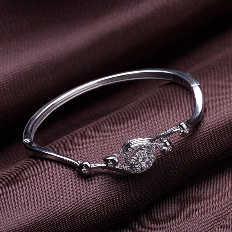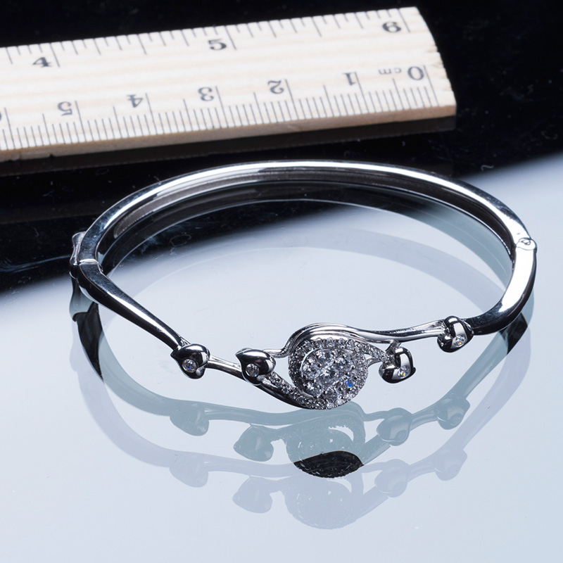 The design of the silver cuff bangle is exquisite. The water droplet composed of zircons sparkles and forms a flowing effect with the hearts on both sides.