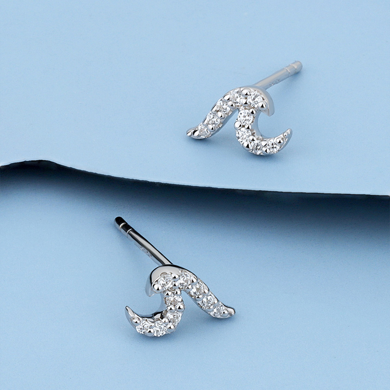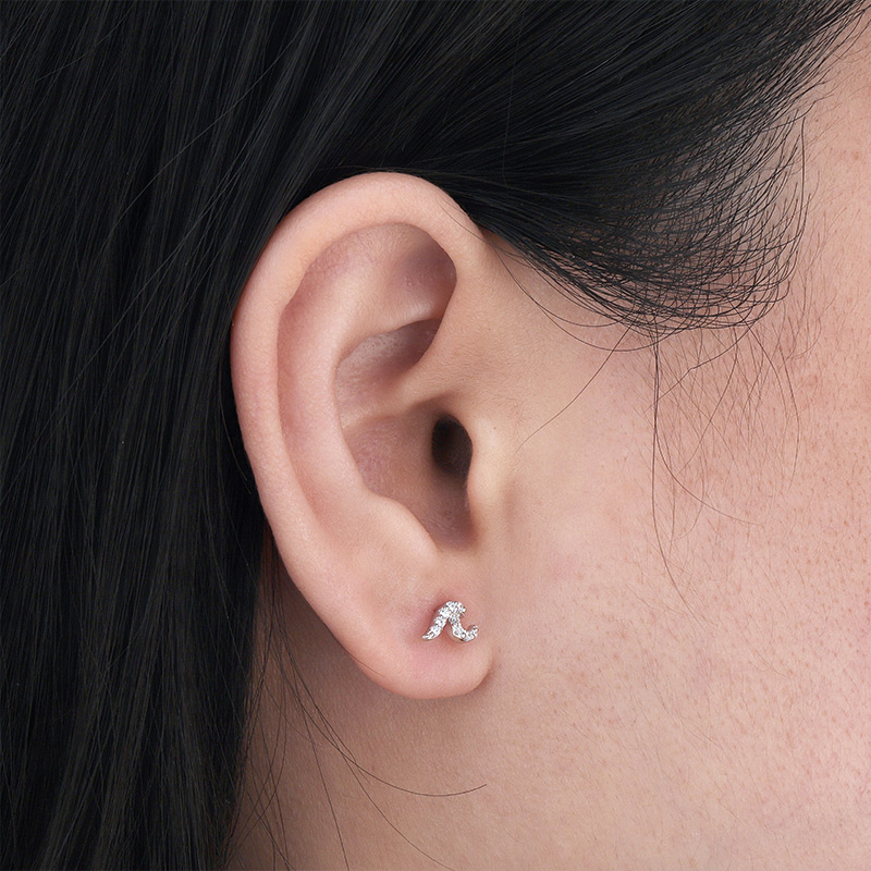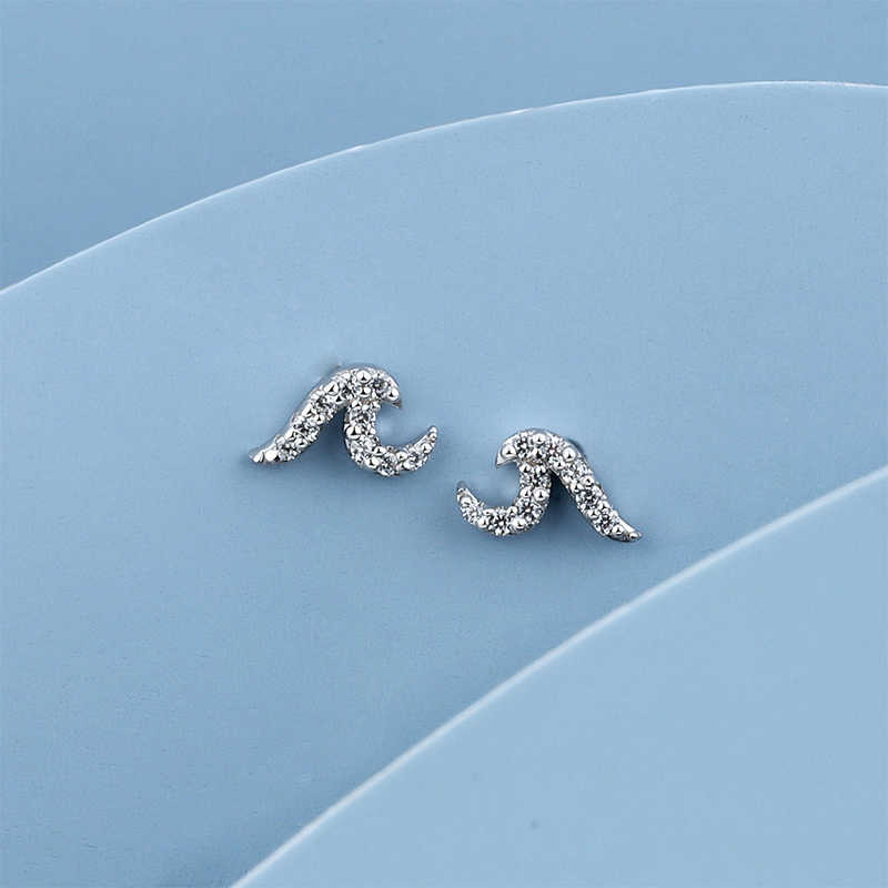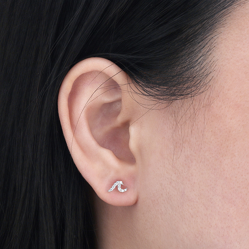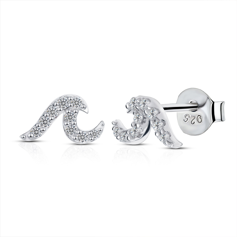 Tiny Silver Wave Stud Earrings