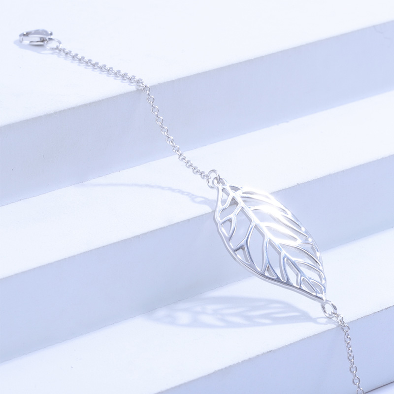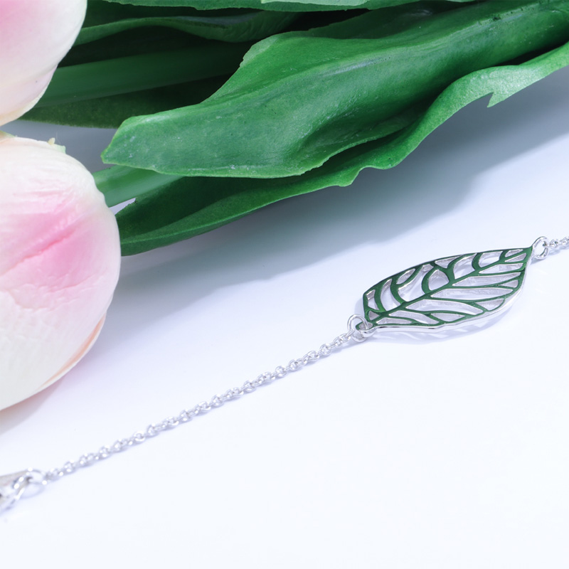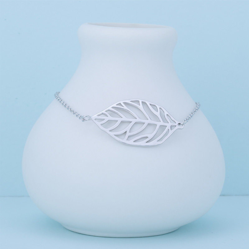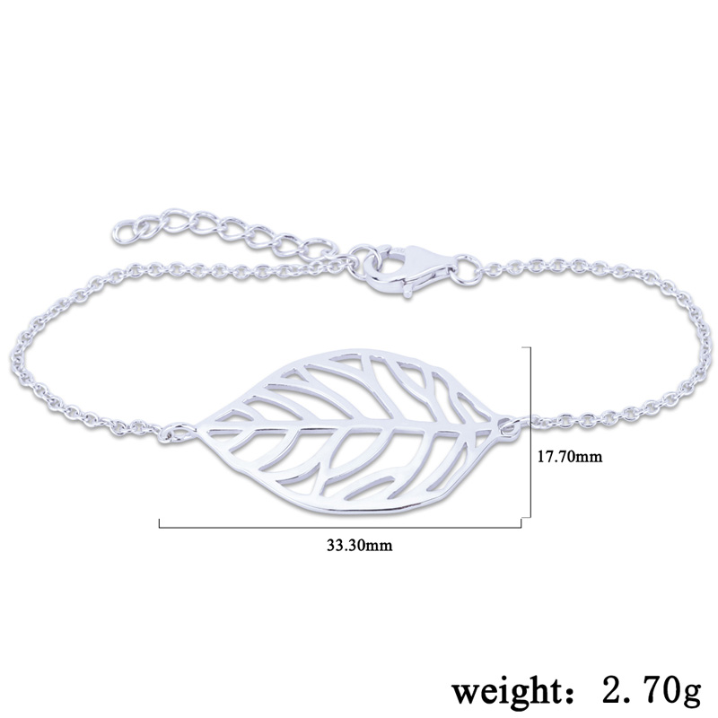 The silver leaf bracelet is crafted in 925 sterling silver 18k white gold plated with fine jewelry craft.