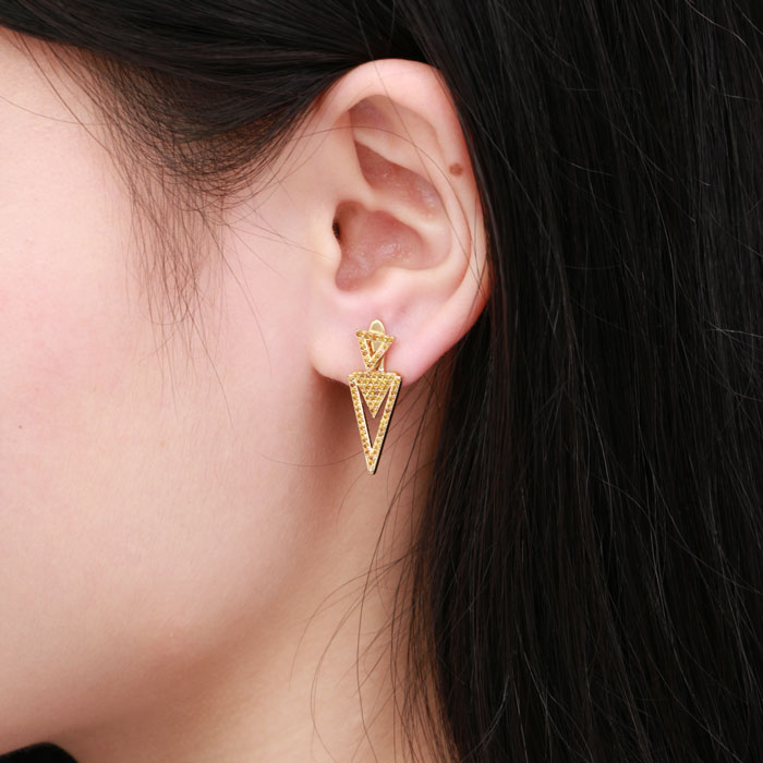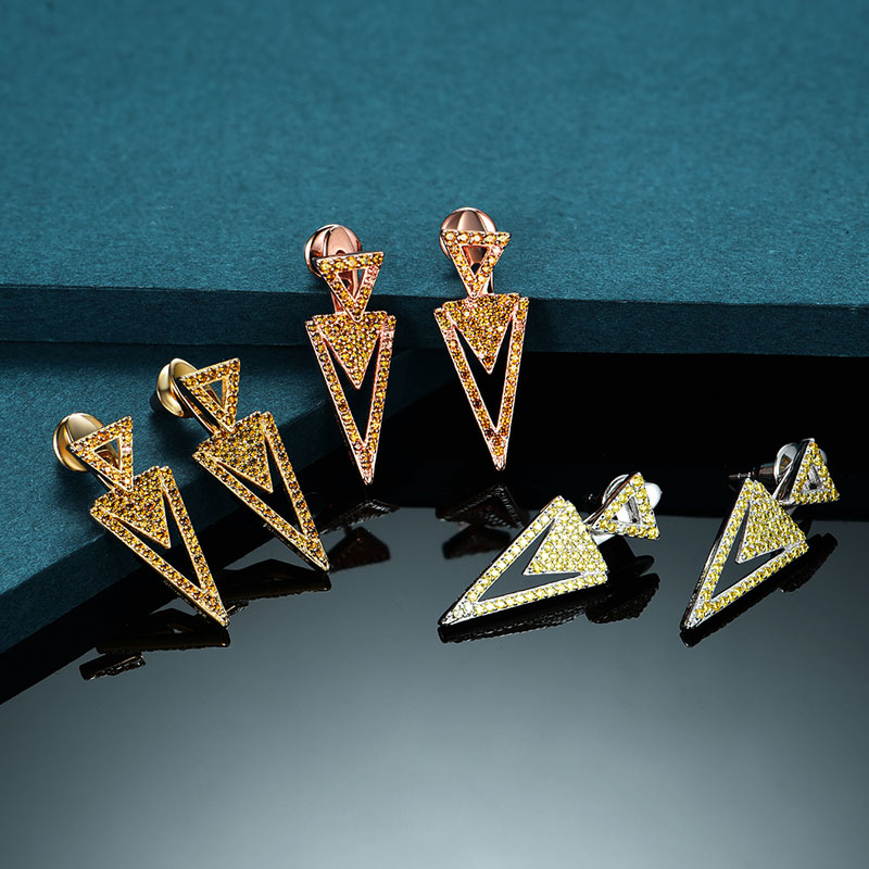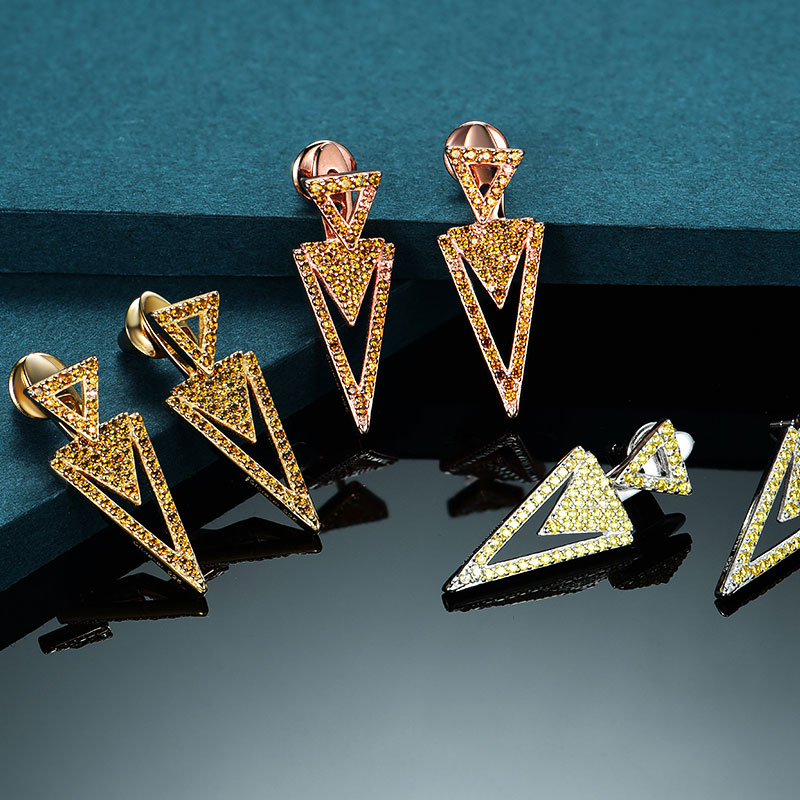 YesThree triangles are stacked together, the cubic zirconia earrings is modern and personalized. The lines are tough and the colors are rich, which enrich the entire earring.