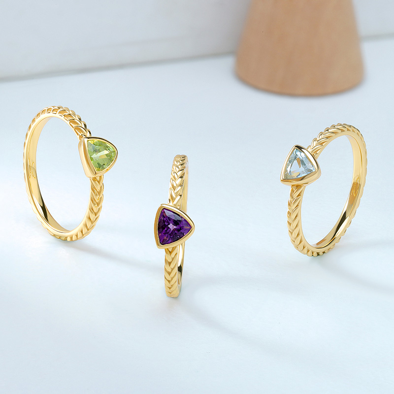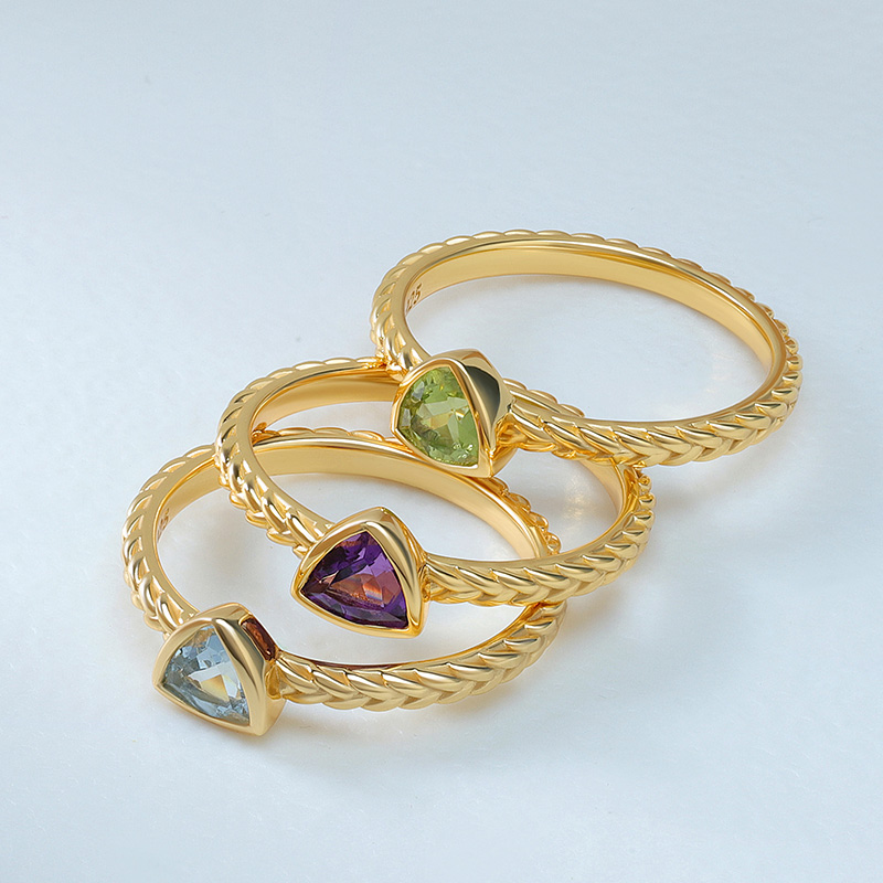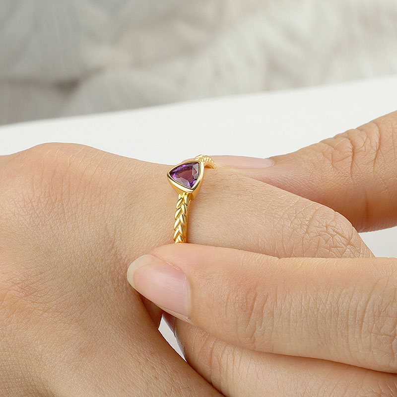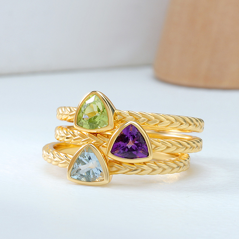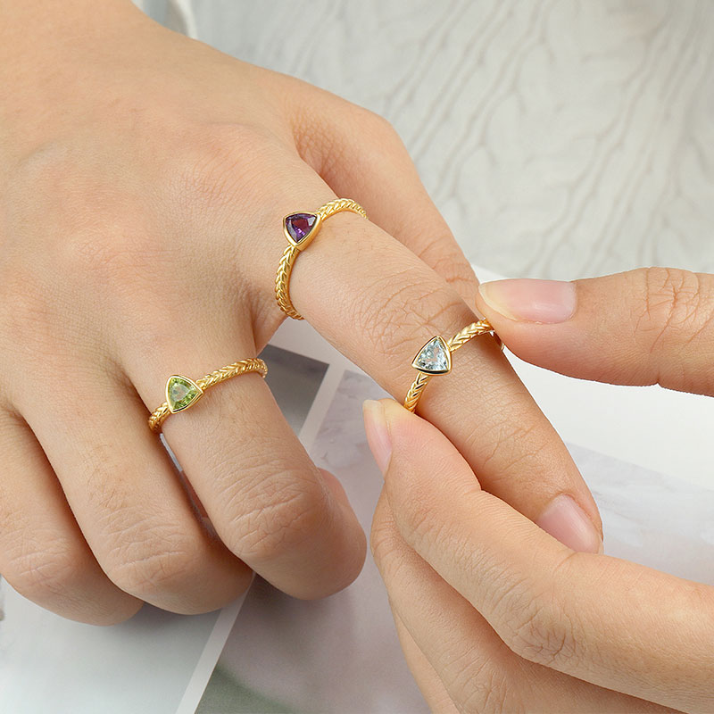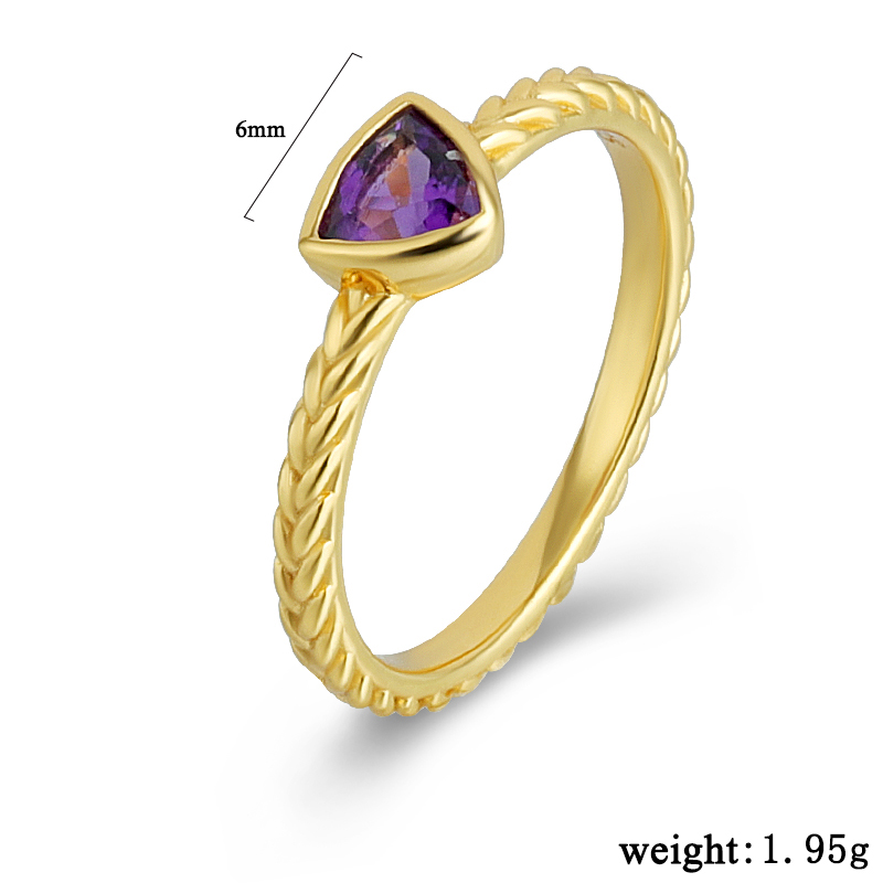The Triangle Gemstone Ring is crafted in 925 sterling silver 18K gold plated with fine jewelry craft.