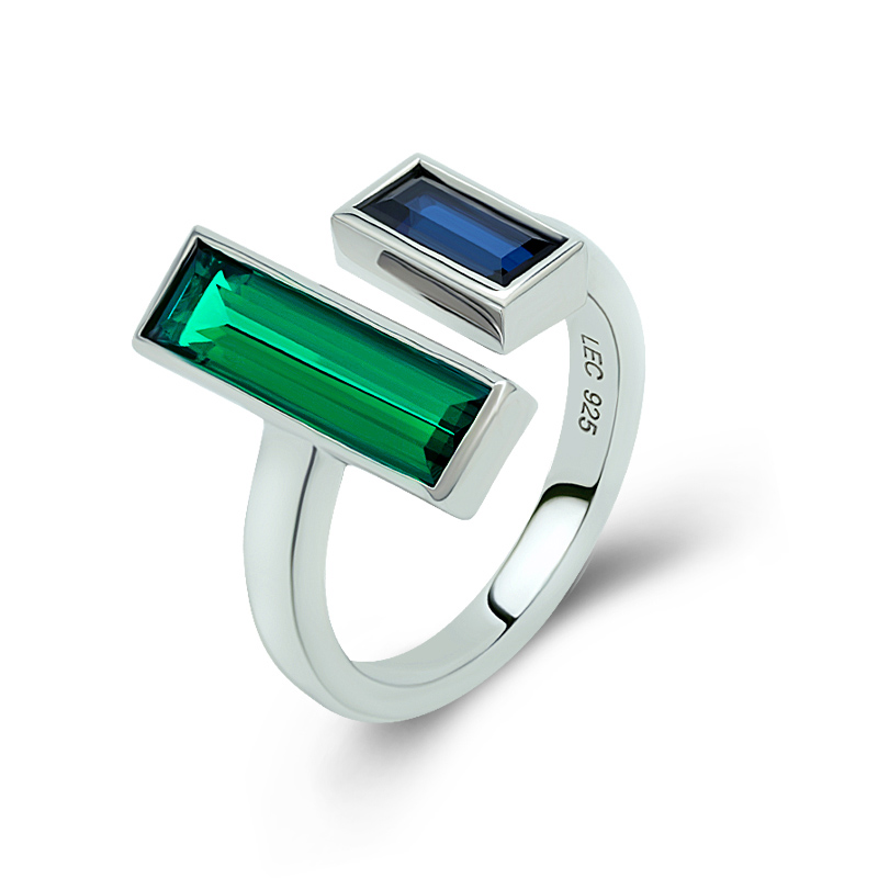 Stone: 15.3*5mm Created Emerald/8.3*5mm Created Sapphire