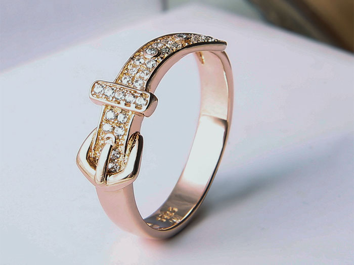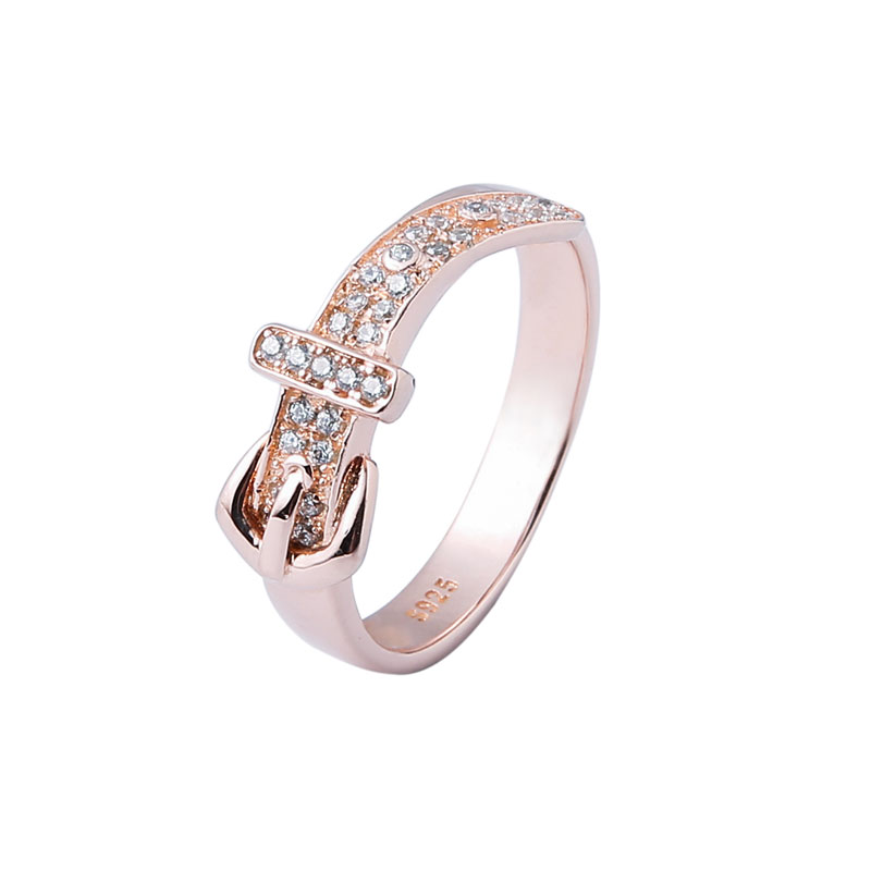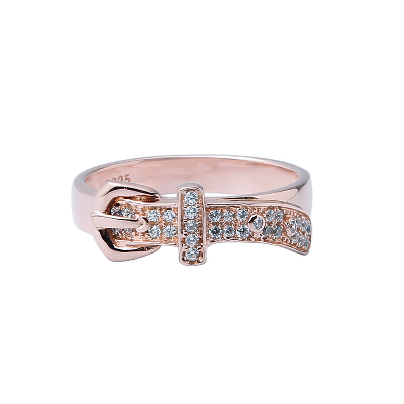 A special men's belt design sterling silver jewelry ring with 18K rose gold plated and setting many little AAAA CZ zircon stones on it.